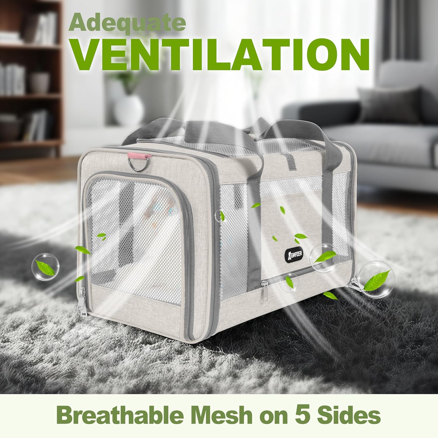 • Escape-Resistant - Self-locking zipper sliders prevent clever kitties from opening this animal carrying bag from the inside while traveling. Reinforced 600D oxford fabric prevents anxious cats or little dogs from claw damage