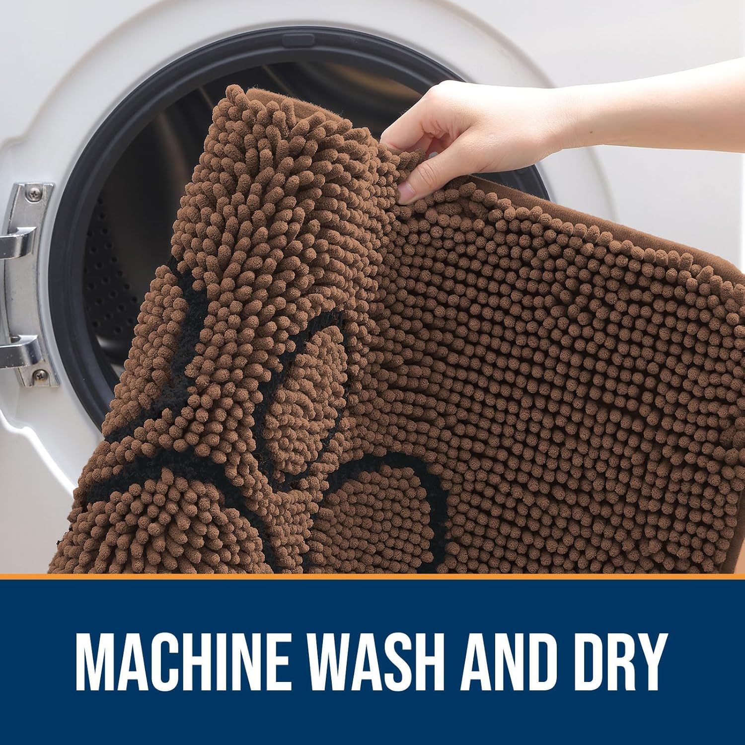 OLANLY Door Mat for Muddy Dog Paws 36x24, Ultra Absorbent Chenille Mud Doormat with Paw Print Design, Non-Slip Washable Doormat for Indoor Entryway, Quick-Dry Pet Bed Mats for Dirty Dogs, Mocha