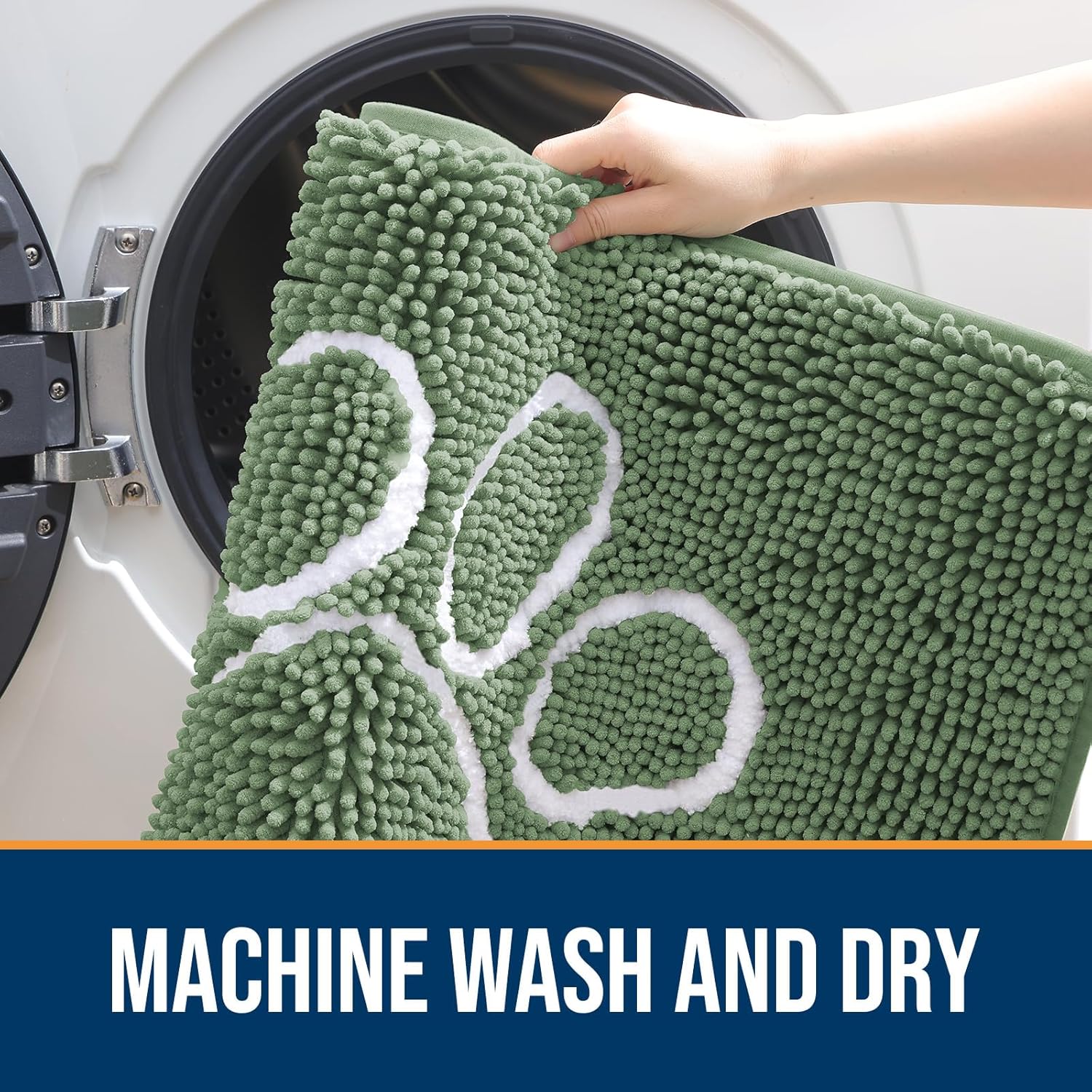 OLANLY Door Mat for Muddy Dog Paws 48x30, Absorbent Chenille Doormat with Paw Print Design, Non-Slip Washable Doormat for Indoor Entryway, Quick-Dry Pet Bed Mats for Dirty Dogs, Olive Green and White