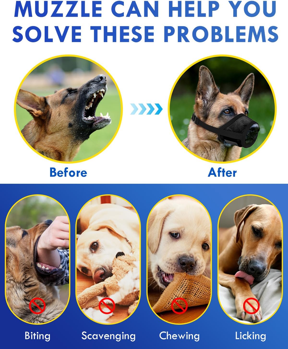 - FEATHERLIGHT COMFORT: Say goodbye to unnecessary stress! Crafted from lightweight mesh, our no-bite muzzle for dogs is built to withstand the wear and tear of daily use. By providing comfort and zero burdens, our dog mouth cover ensures a positive experience for you and your furry friend. Whether you're training, socializing, or simply need a muzzle for vet visits, the mesh muzzle is the ideal choice