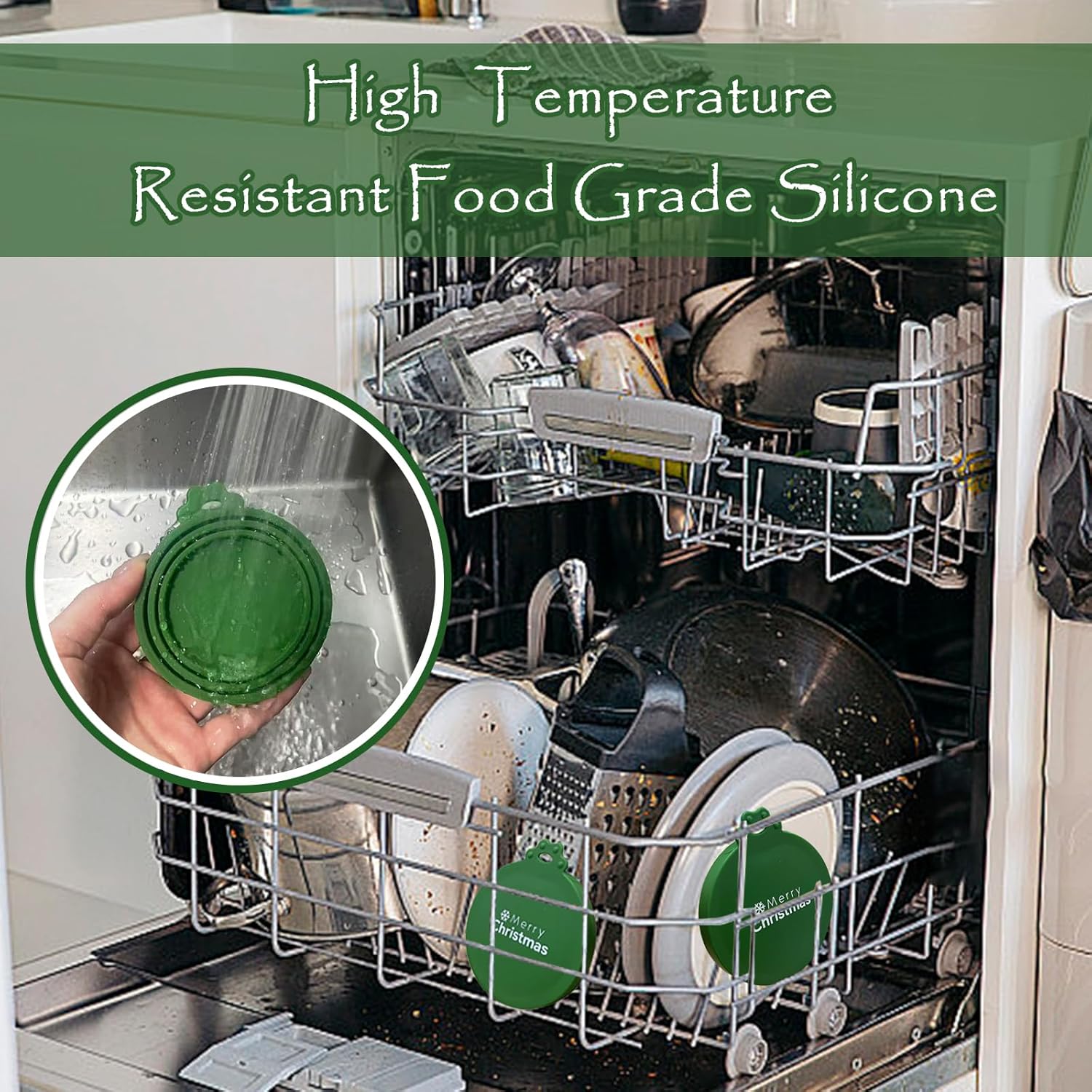 Christmas Pet Set - 3 Cat Food Can Lids & 1 BPA-Free Can Opener | Cute Paw Shape Opener Spatula Spoon for Wet Food | Silicone Spoon & Covers for Dog Cat - Christmas Green