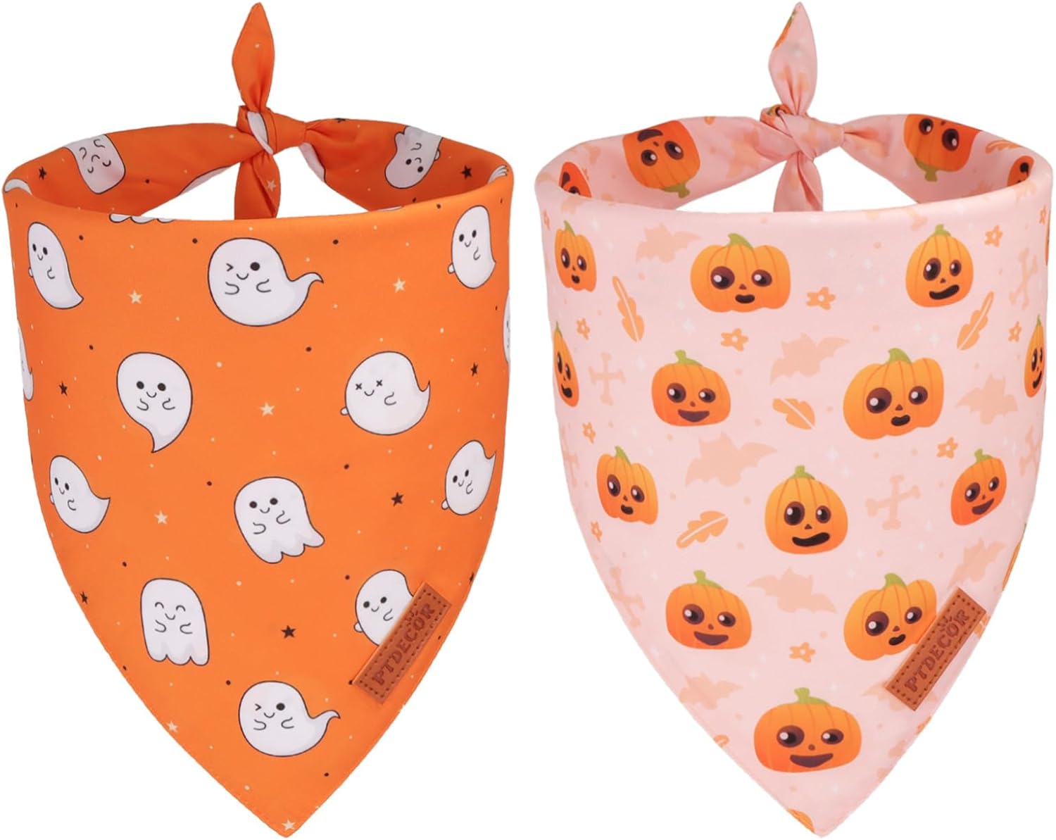 PTDECOR Halloween Dog Bandana, Cute Ghost Pumpkin Design Reversible Holiday Pet Scarf, Adjustable Orange Yellow Halloween Bandanas for X-Large Dogs Pets(X-Large)