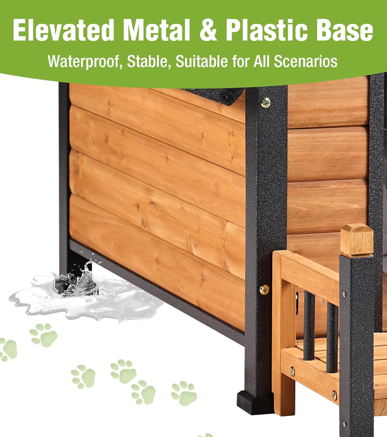 • 𝐄𝐋𝐄𝐕𝐀𝐓𝐄𝐃 𝐁𝐀𝐒𝐄 π…πŽπ‘ π–π€π“π„π‘ππ‘πŽπŽπ… π’π“π€ππˆπ‹πˆπ“π˜ - Combining metal and plastic, the elevated base of this dog house blocks ground moisture, keeping the interior dry