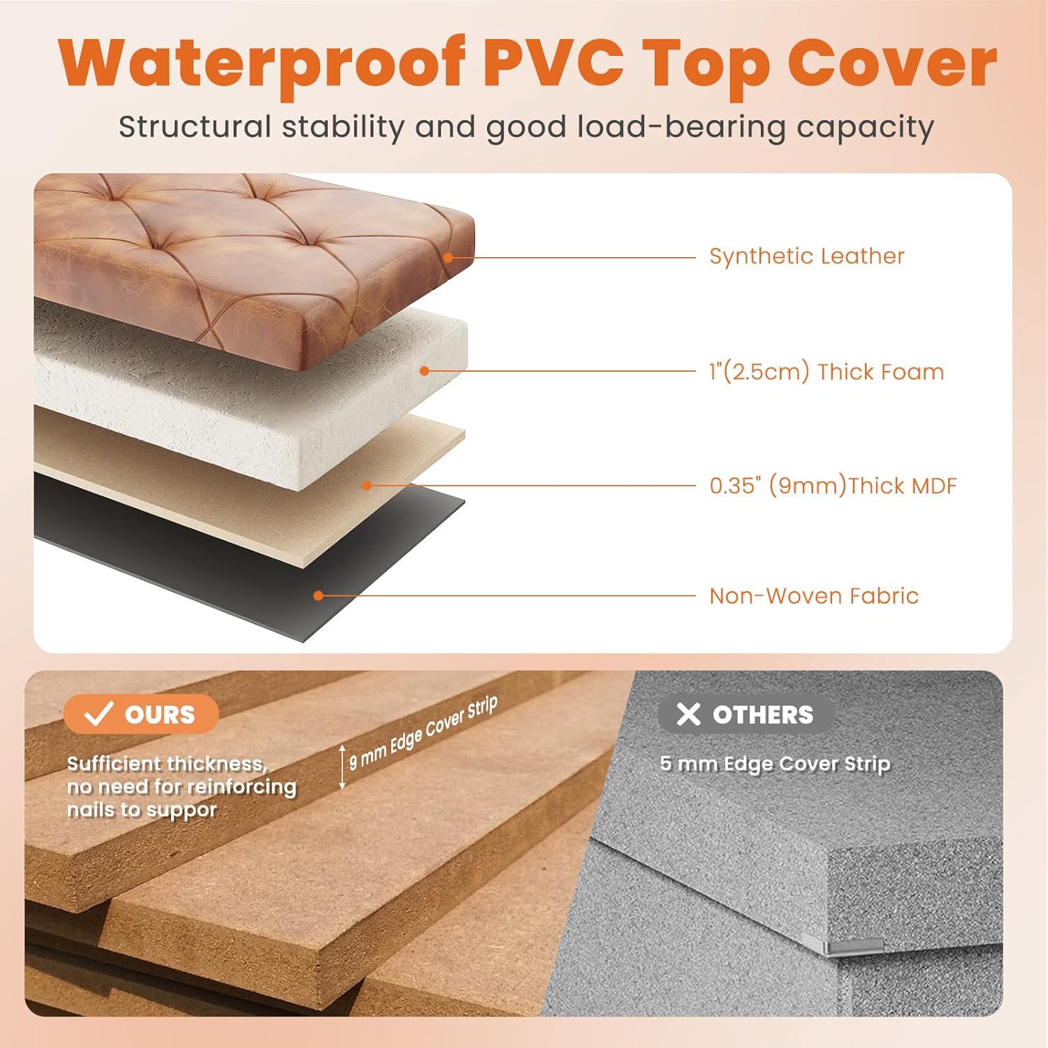 • ใ€Premium & Durable Buildใ€‘The black Sweetcrispy storage ottoman features chic Lychee Grain Leather, while brown uses sleek Synthetic Leatherโ€”both super comfy and built to last. No flimsy stuff here! We use 4 layers of reinforced material with 9mm-thick edges, supporting up to 660 lbs without extra nails. Just sturdy Sweetcrispy quality!