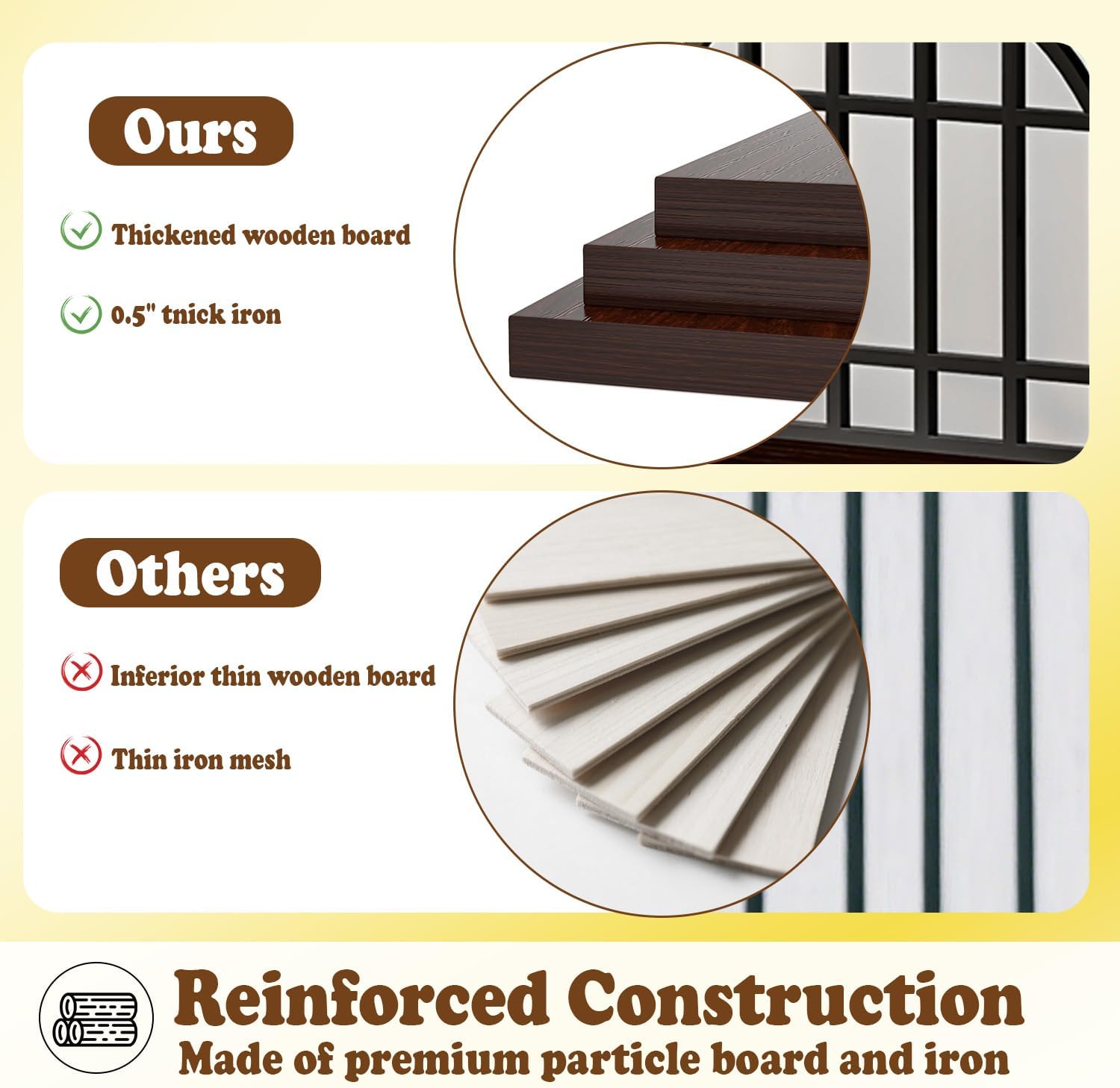 • 【Upgraded Reinforced Structure】 Built with premium particle board and a thickened iron frame, this dog kennel indoor delivers superior stability and durability. Its robust construction resists chewing, scratching, and daily wear—perfect for large breeds. Designed to last, it keeps your dog secure while blending seamlessly with your home decor.