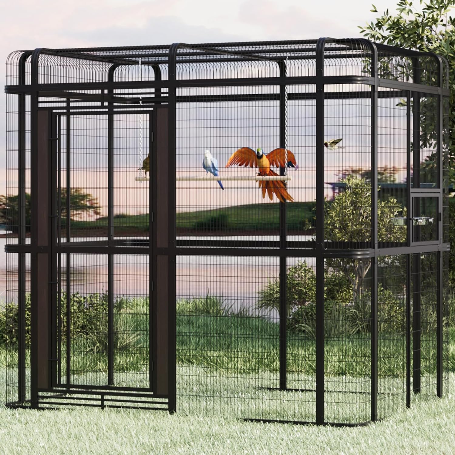 Large Bird Cage for Parakeets Outdoor Bird Aviary Parrot Cage with Perch, Walk-in Heavy Duty Birdcage for Macaws Canaries Parrots Budgie Lovebirds, Black