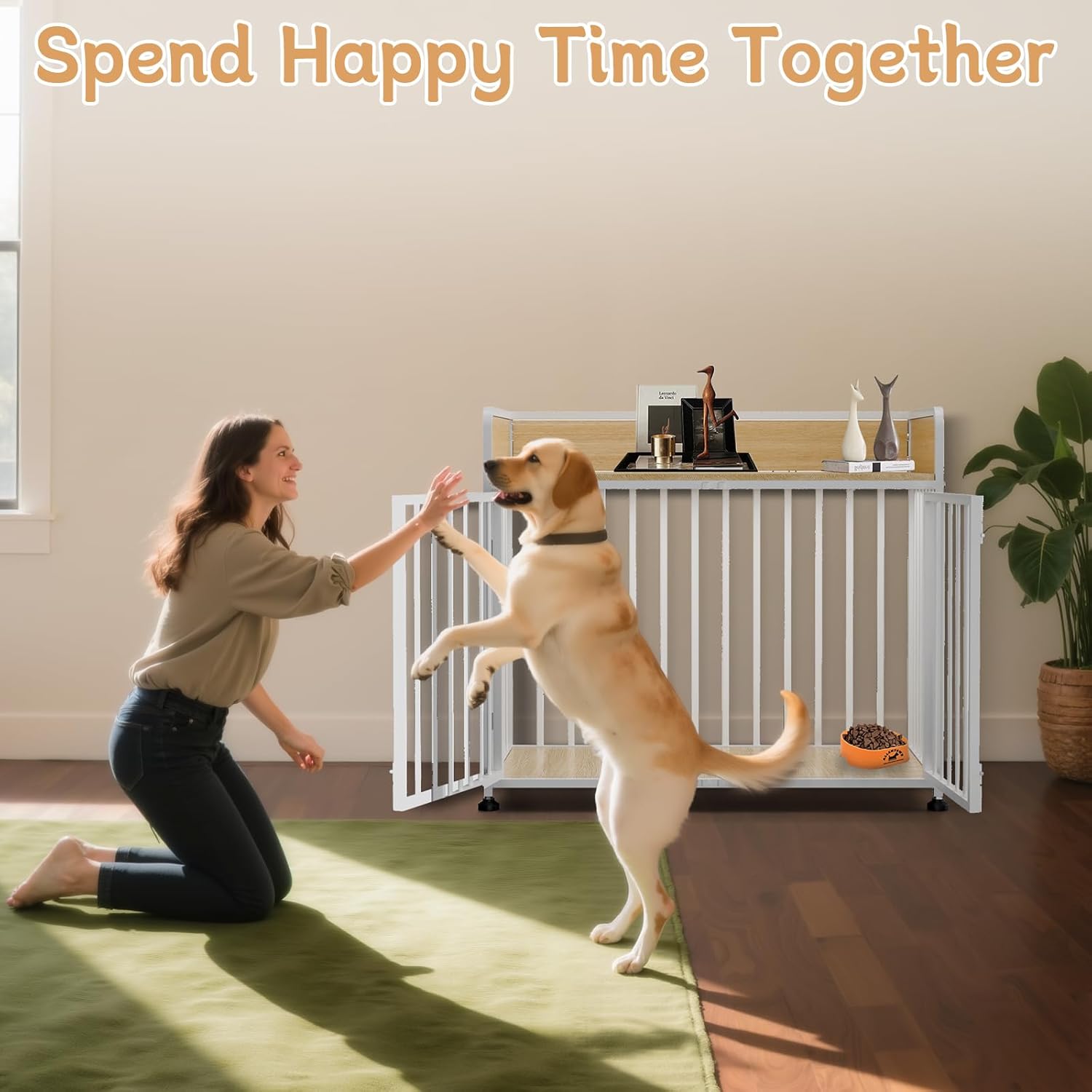 • Multifunctional Dog Crate Table - Simple and retro dog kennel furniture, suitable for various decoration styles. It is not only a dog cage for dogs, but also can be used as a side table, coffee table, or bedside table. The wide top can be used to place decorations or dog food, photo albums, small and medium-sized plants, magazines, etc