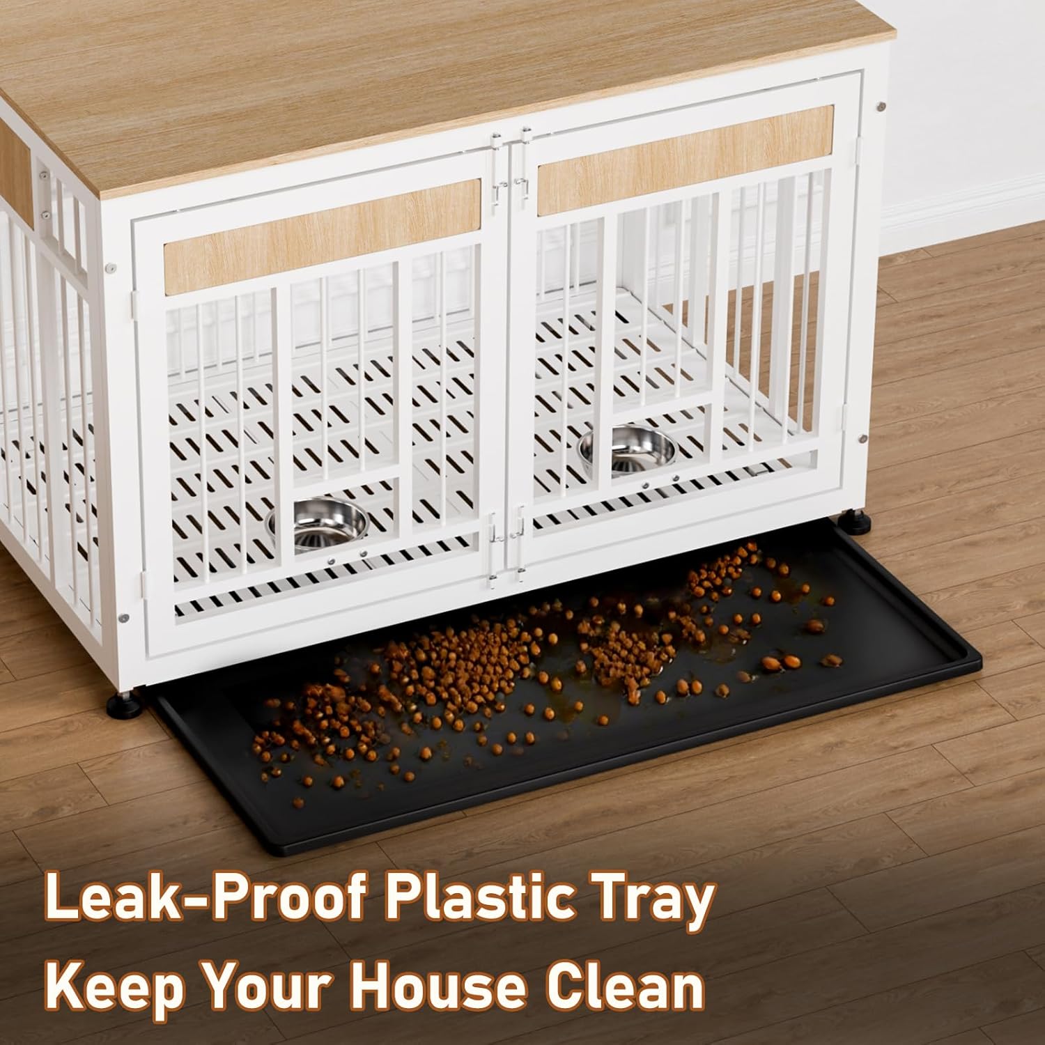 • Easy-Clean Removable Tray: Our Dog crate includes a slide-out plastic tray for quick cleanup of pet hair, spills, or accidents. Simply pull, wash, and replace.