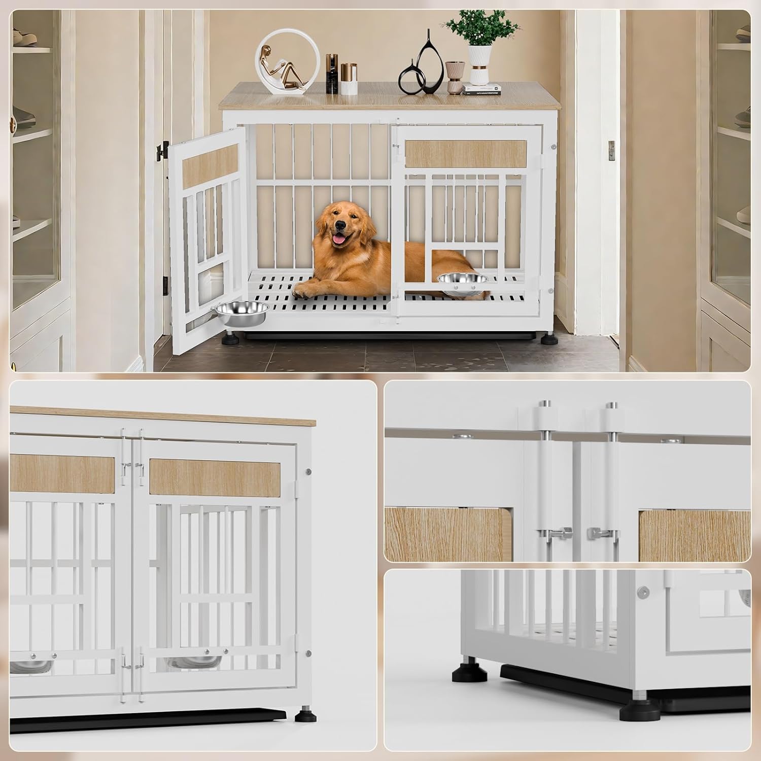 • Heavy-Duty & Safe Construction: Dog cage furniture features reinforced metal frame (rust-resistant) and durable engineered wood panels. It won't be damaged by pet bites! Ventilation cutouts ensure airflow for pet comfort and safety.