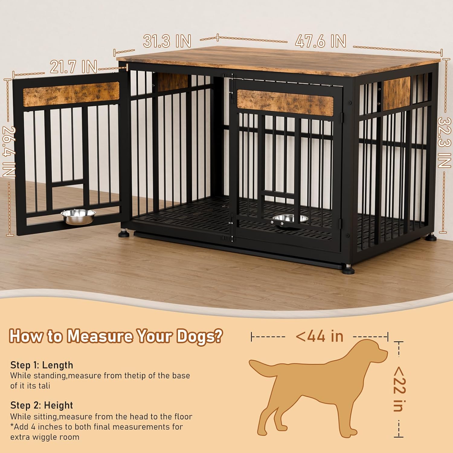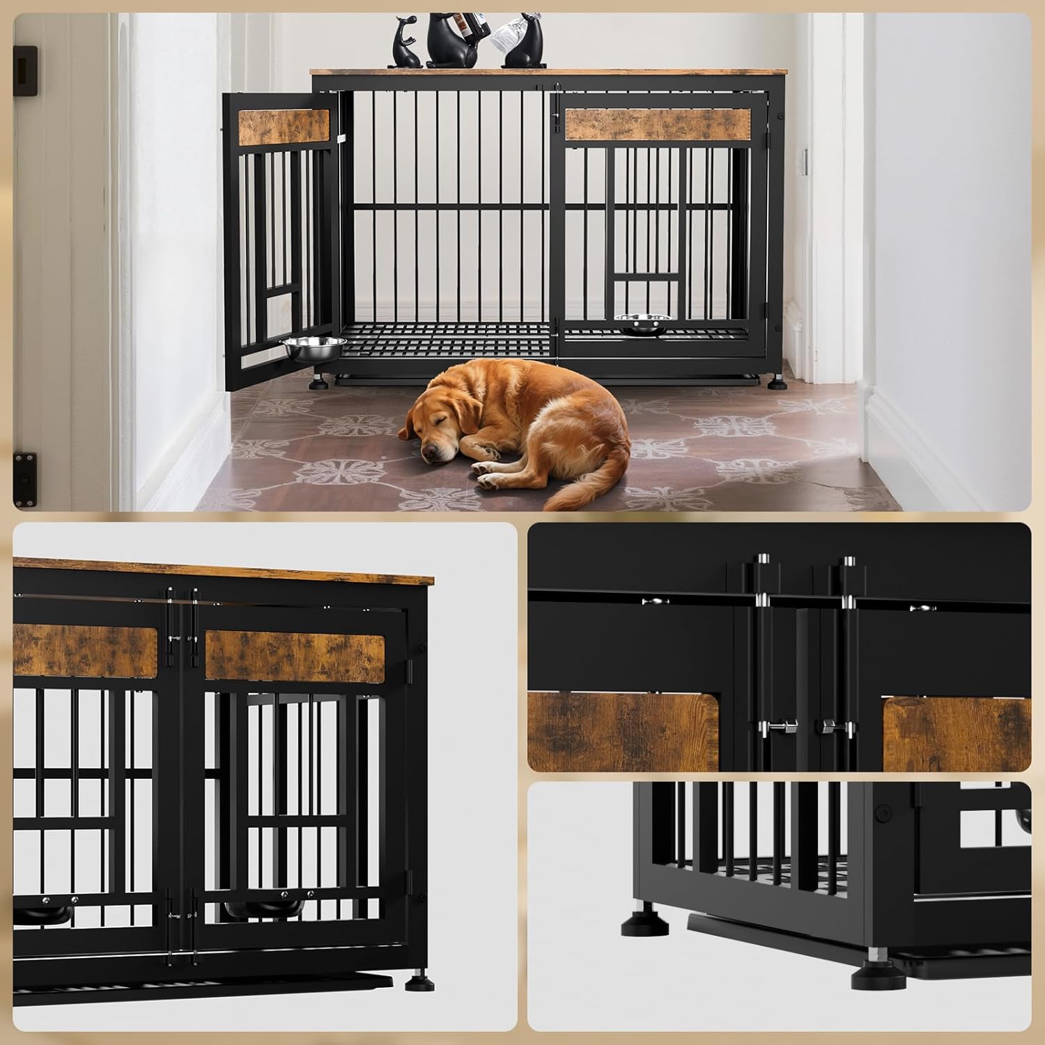• Heavy-Duty & Safe Construction: Dog cage furniture features reinforced metal frame (rust-resistant) and durable engineered wood panels. It won't be damaged by pet bites! Ventilation cutouts ensure airflow for pet comfort and safety.