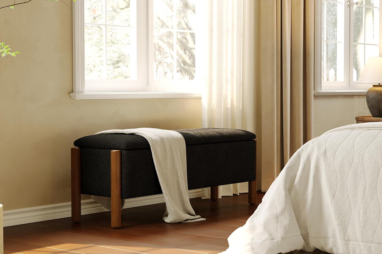 • ELEGANT & TIMELESS DESIGN: Elevate your space with this stylish Storage Bench featuring genuine walnut wood-grain legs and plush 5.5cm cushioned seating. Wrapped in skin-friendly loop yarn fabric, this chic Ottoman Bench seamlessly enhances bedroom, end of bed, entryway, or livingroom decor while offering lasting comfort.