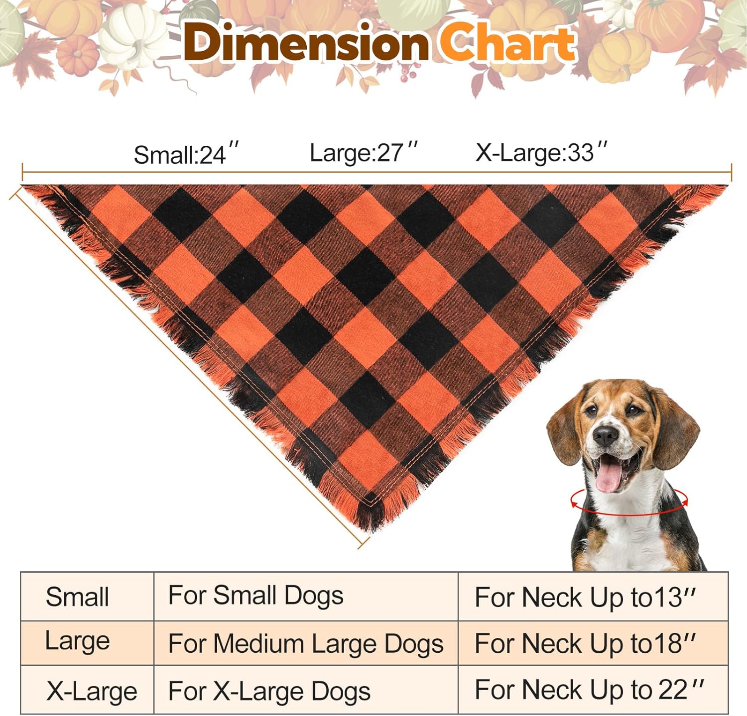 Kytely Fall Dog Bandana, 2Pack Halloween Dog Bandanas, Thanksgiving Classic Plaid Pet Scarf with Tassels Edges for Boy and Girl, Pet Apparel & Accessories Costume for Medium Large Dogs