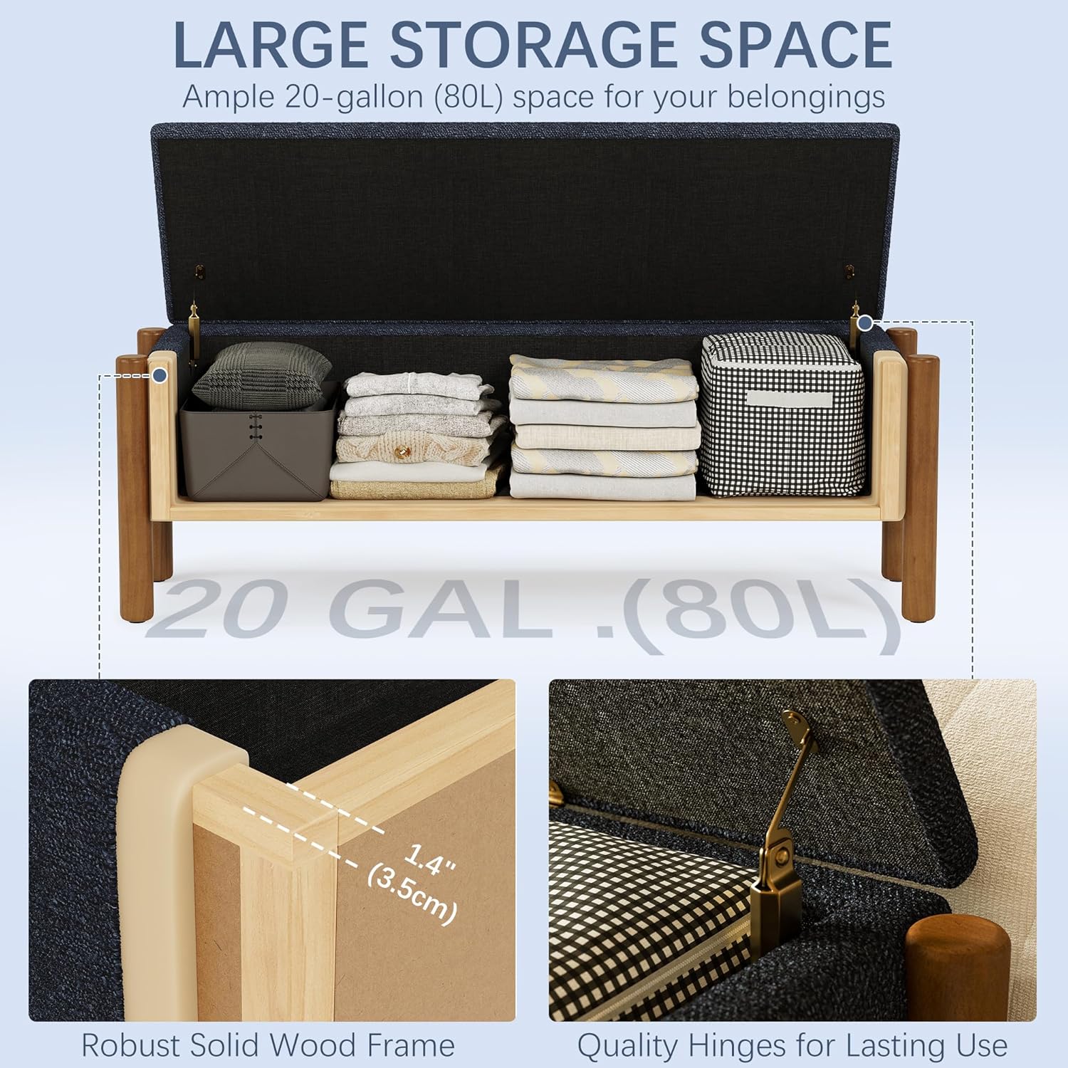 • ELEGANT & TIMELESS DESIGN: Elevate your space with this stylish Storage Bench featuring genuine walnut wood-grain legs and plush 5.5cm cushioned seating. Wrapped in skin-friendly loop yarn fabric, this chic Ottoman Bench seamlessly enhances bedroom, end of bed, entryway, or livingroom decor while offering lasting comfort.