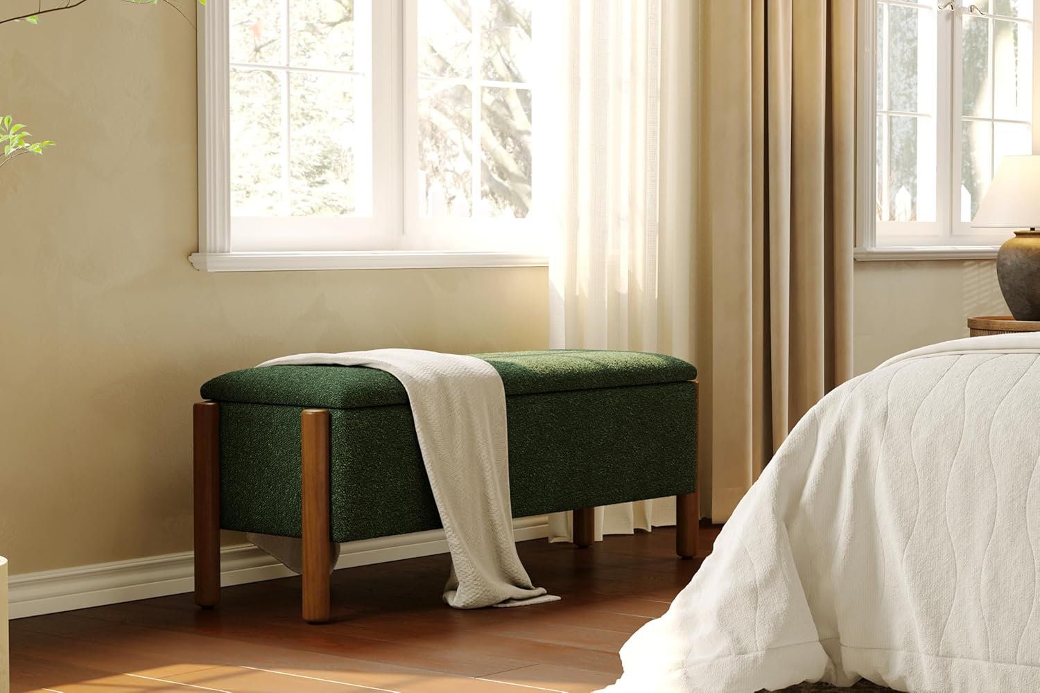 • ELEGANT & TIMELESS DESIGN: Elevate your space with this stylish Storage Bench featuring genuine walnut wood-grain legs and plush 5.5cm cushioned seating. Wrapped in skin-friendly loop yarn fabric, this chic Ottoman Bench seamlessly enhances bedroom, end of bed, entryway, or livingroom decor while offering lasting comfort.