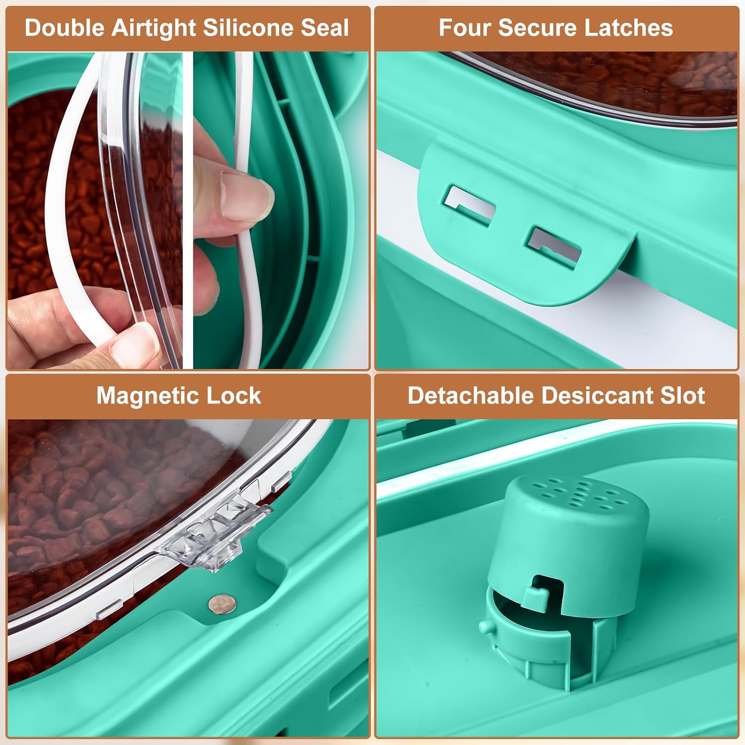 • Airtight Freshness Protection: This airtight dog food storage container features a Snap lock lid and double air-tight seal, lock out moisture and humidity. There is also a desiccant card slot on the inside of the lid, and you can also place a desiccant to further prevent moisture intrusion