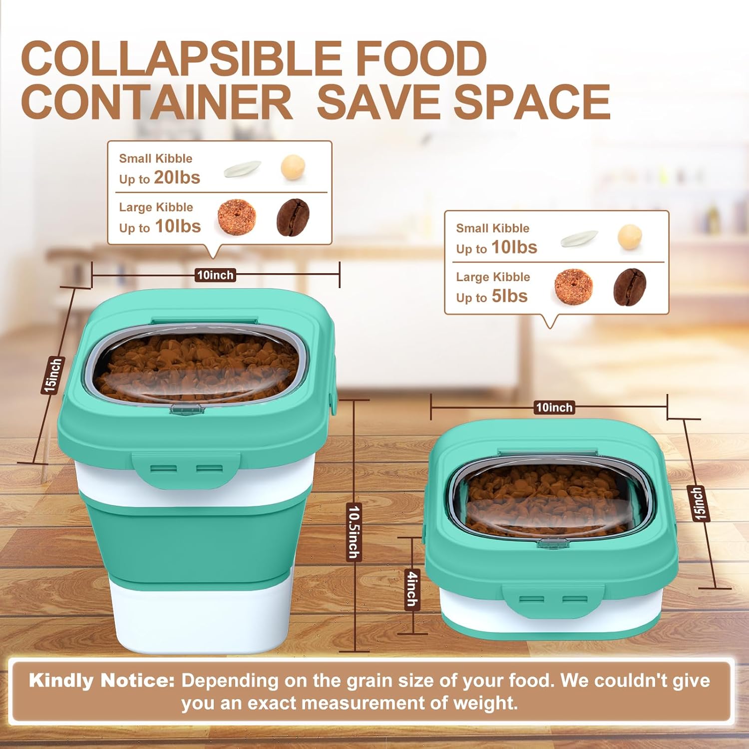 Dog Food Storage Container, 10lb to 13lb Collapsible Dog Cat Food Containers with Airtight Clear Flip-top and Pet Food Scoop, Pet Food Storage Container Bin for Dog Cat Bird Other Pets (Green)