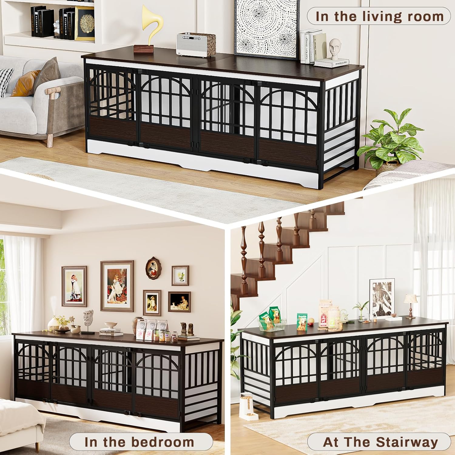 • MULTIFUNCTIONAL DOG CRATE TABLE - The simple retro shape of this dog crate can perfectly fit into various home styles, and the flat surface of the top can be used to place a TV, dog food or storage items. The extra-large size ensures space for your dog to move around without taking up too much room.
