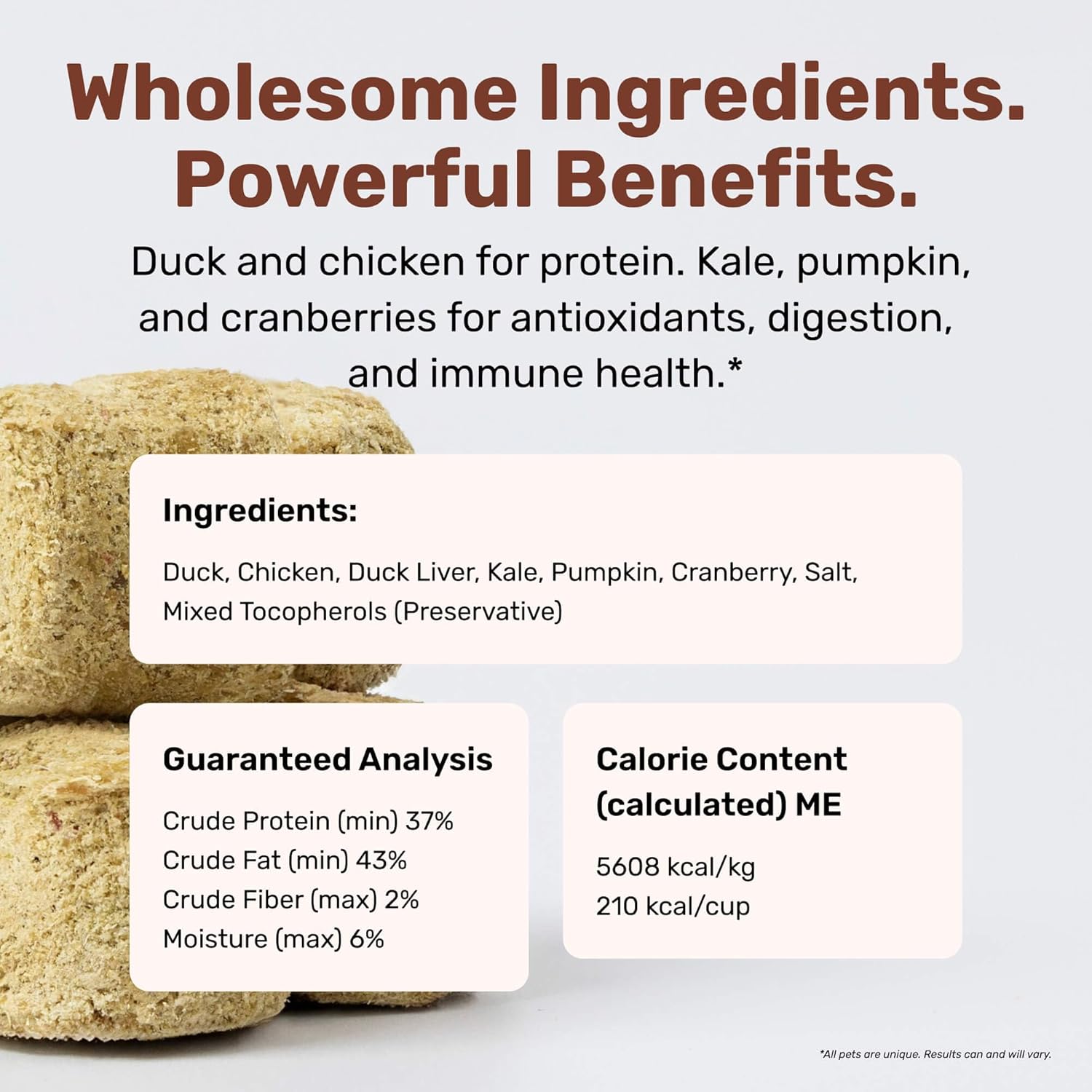 • Nutrient-Rich Freeze-Dried Formula: Made with protein-packed duck, chicken and chicken liver, plus nutrient-dense fruits and vegetables โ€” all freeze-dried raw to help preserve flavor and nutrition in every bite.