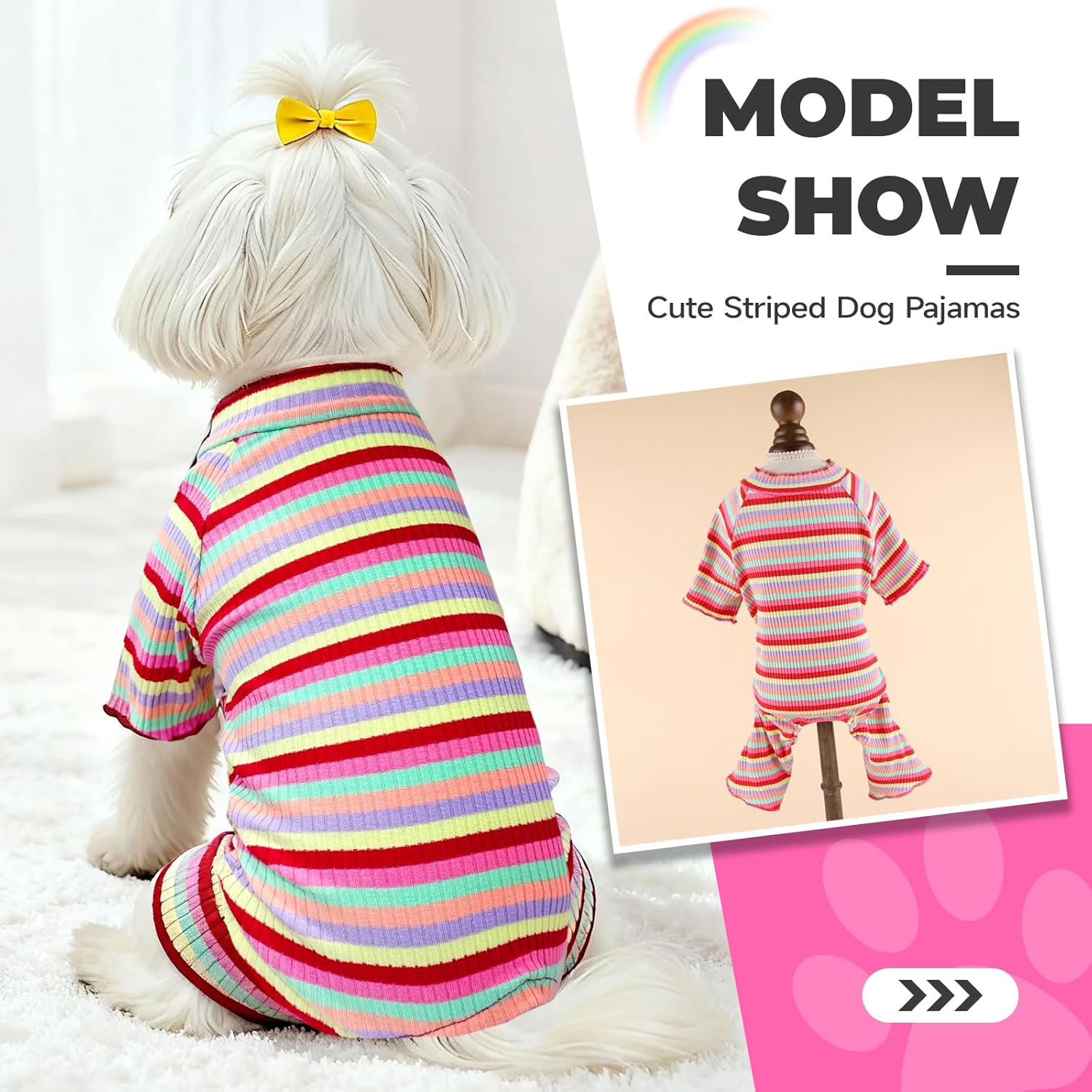 - VIBRANT STRIPED STYLE & 4 CHARMING COLORS: Elevate your pup's comfort and style with our adorable striped dog pajamas! Designed to be both cute and cozy, these PJs are perfect for a night in or fun photo opportunities. Choose from four vibrant colorsโPretty Pink, Grass Green, Sunny Yellow, and Ruby Redโto match your dog's unique personality and your personal style