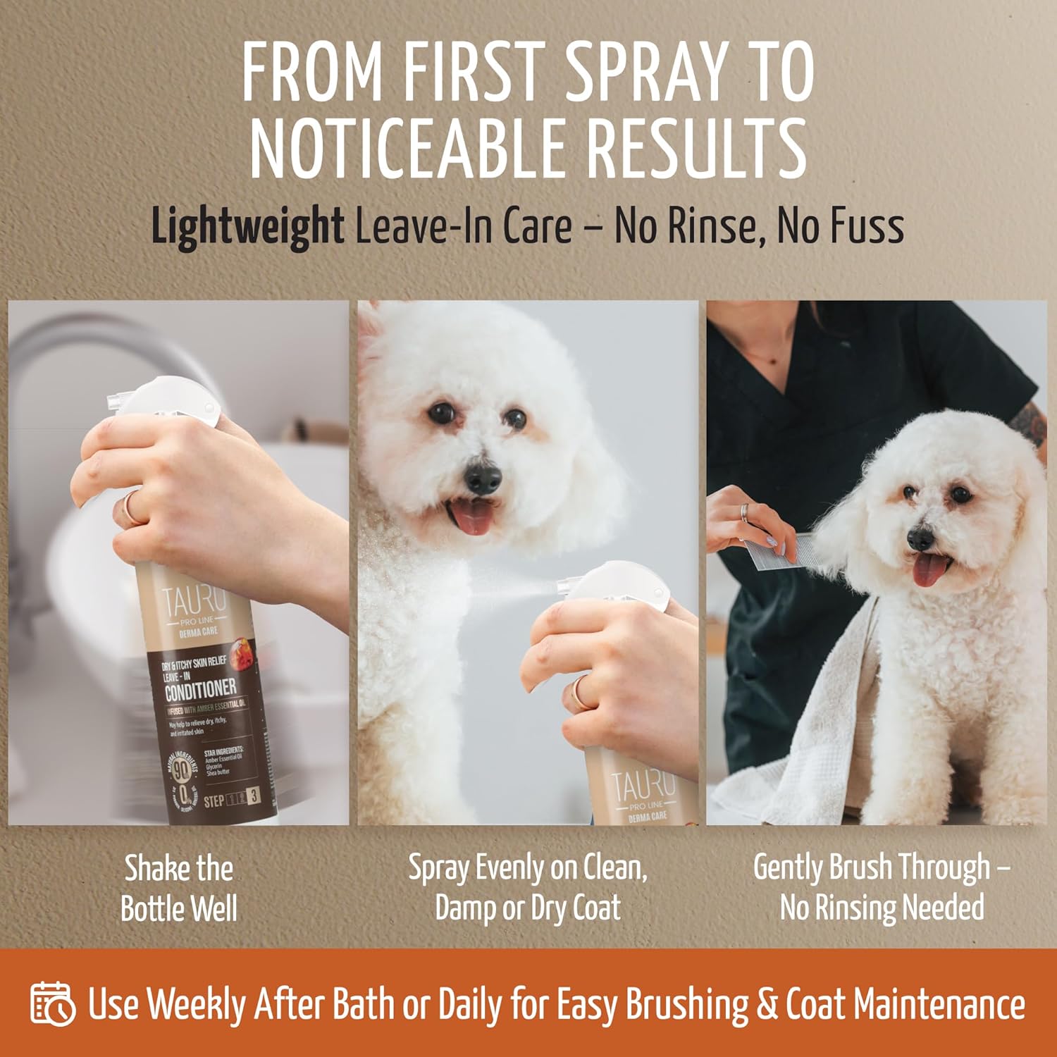 Tauro Pro Line Dog Conditioner Spray for Itchy Skin - Soothes Dry, Sensitive Skin, Calms Itching from Allergies, Dandruff - Leave in Pet Conditioner for Dogs, Cat & Puppy (Derma Care 8.5 Fl Oz)