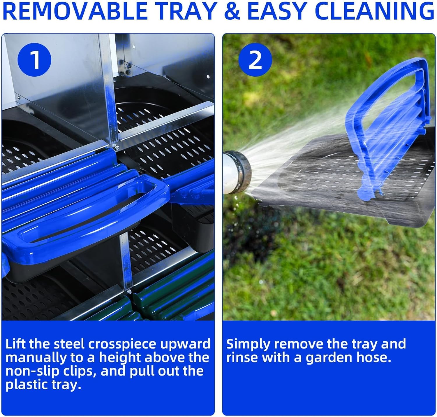 • EASY CLEANING: The small holes in the bottom of this egg nesting box prevent moisture and debris from accumulating, and the removable tray makes cleaning easy. Simply rinse with water to keep the nesting box clean and tidy, ensuring the health of the hens.