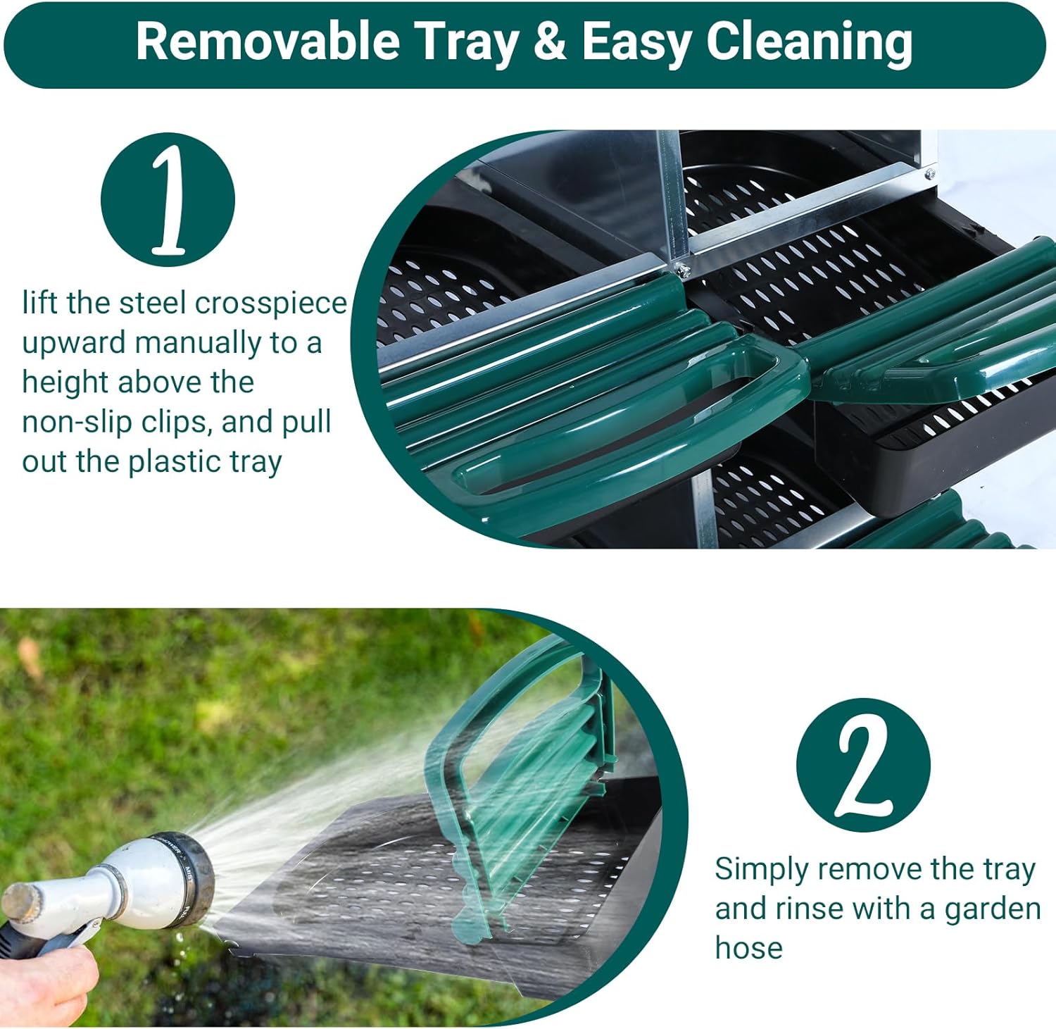 • EASY CLEANING: The small holes in the bottom of this egg nesting box prevent moisture and debris from accumulating, and the removable tray makes cleaning easy. Simply rinse with water to keep the nesting box clean and tidy, ensuring the health of the hens.