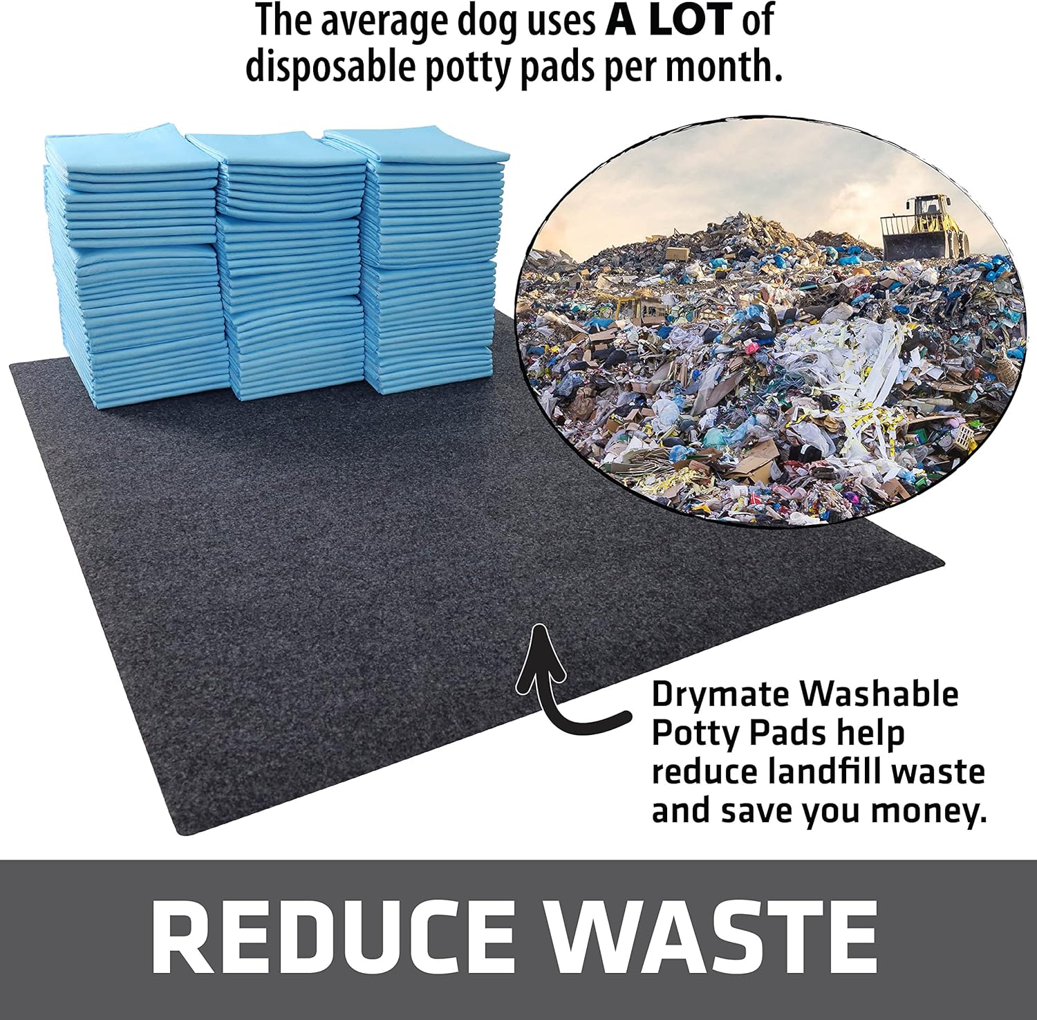 • HELP REDUCE LANDFILL WASTE & SAVE MONEY: Drymate Washable & Reusable Potty Pads provide an environmentally-friendly solution for dog potty training by eliminating the need for disposable pads, helping to reduce landfill waste and save you $$$. CONTAINS ACCIDENTS & PROTECTS SURFACES: Our potty pads quickly absorb urine and protect floors from potty training accidents in and around the home.