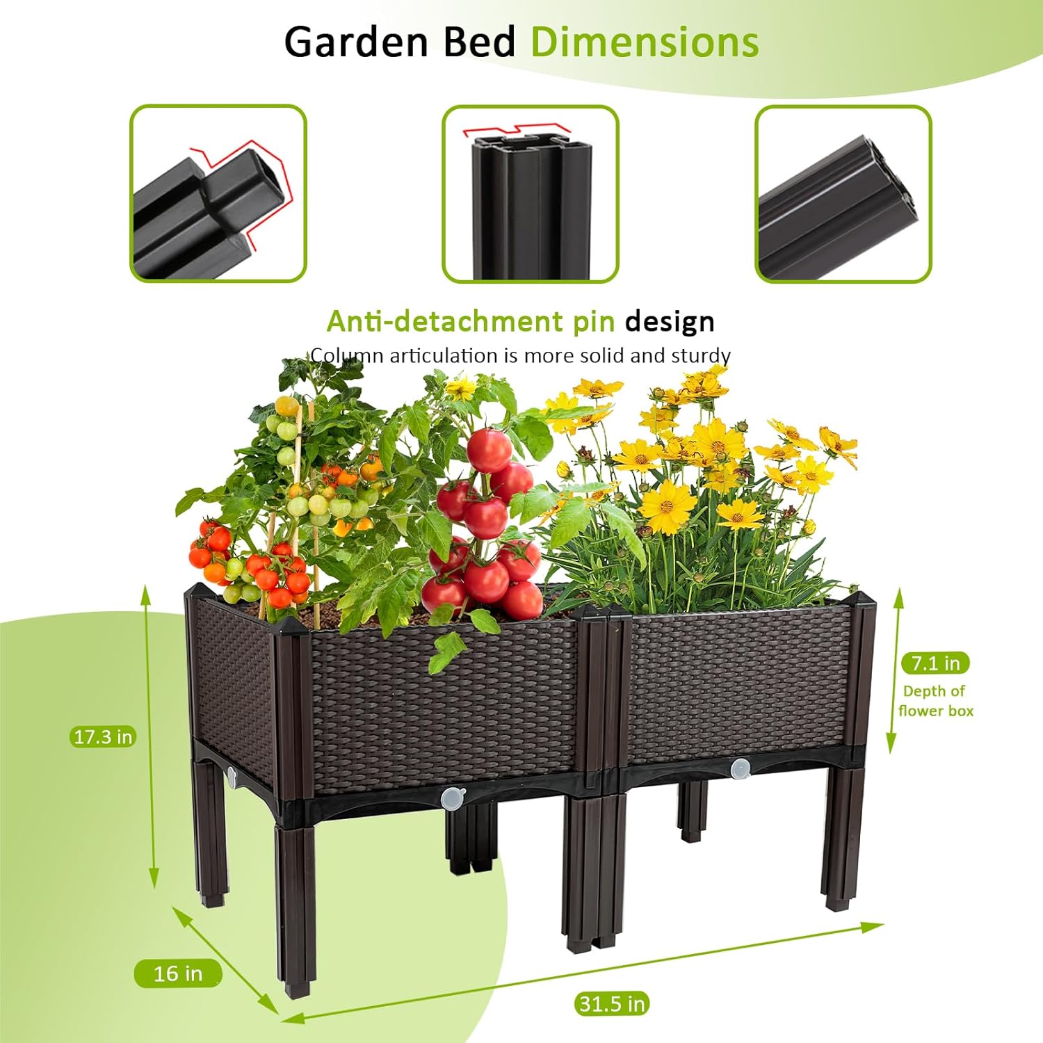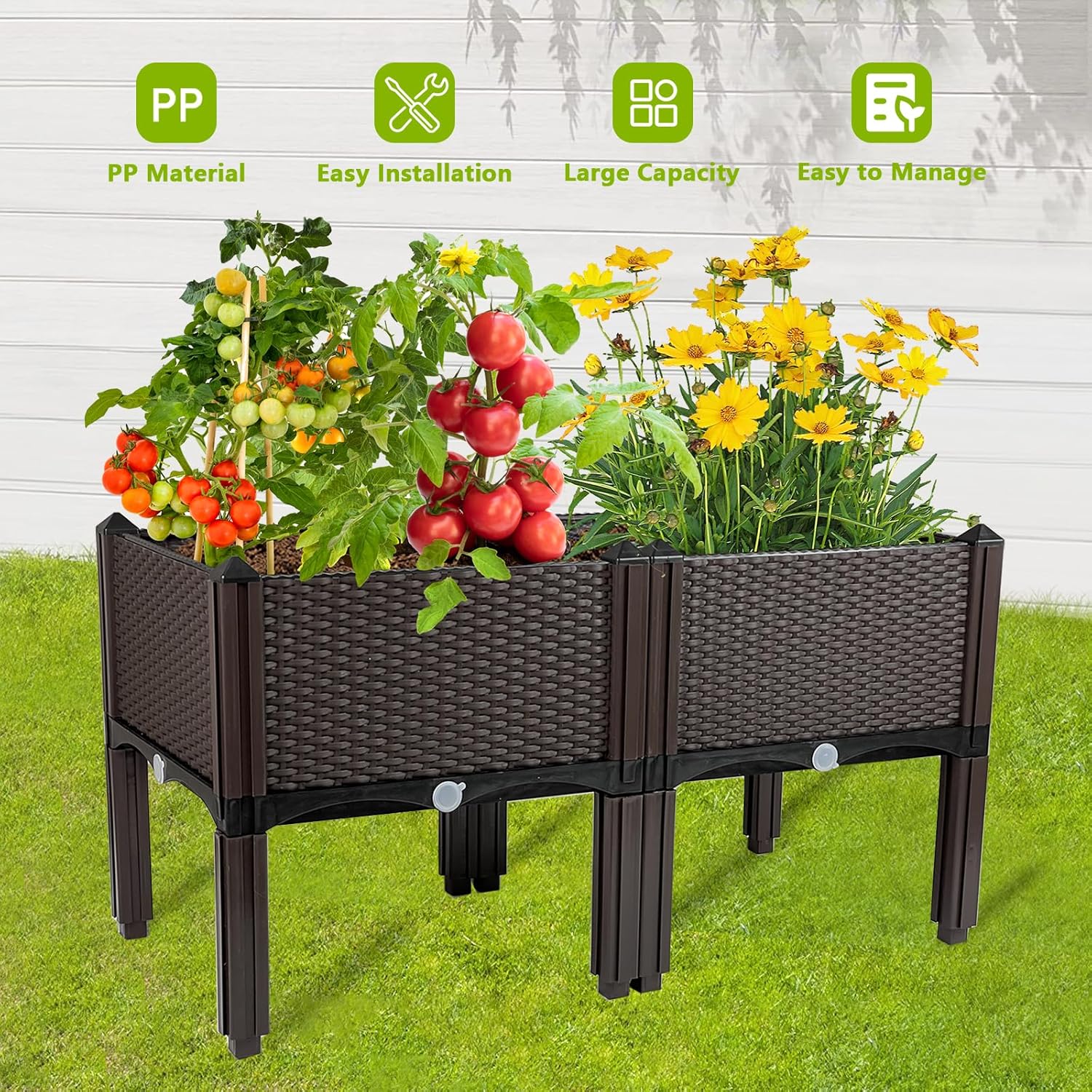 • 🌻【Durable Outdoor Growth Box】Our elevated planter boxes are made of reinforced PP material with a rattan pattern that is lightweight, high load bearing and reusable.