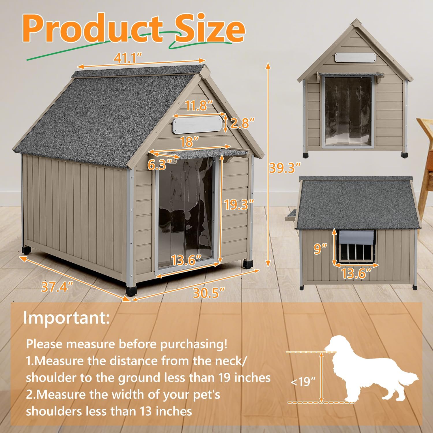 • Great for Medium to Large Dogs: This sturdy outdoor dog house features a spacious 28.5" x 35.6" interior, perfectly sized for medium to large breeds. PRO TIP: Measure your dog's shoulder width before purchasing to ensure a comfortable fit through the doorway of this large dog house