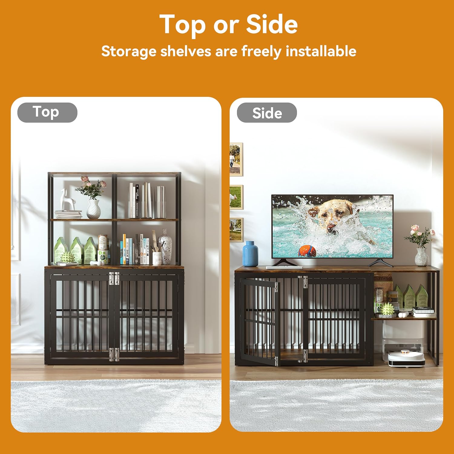 • Diverse Assembly Methods: This heavy duty dog cage furniture features an adjustable storage rack that can be placed not only on the side but also on the top of the dog cage, xxl dog crates for dogs indoor providing you with multiple assembly methods to meet your diverse assembly needs