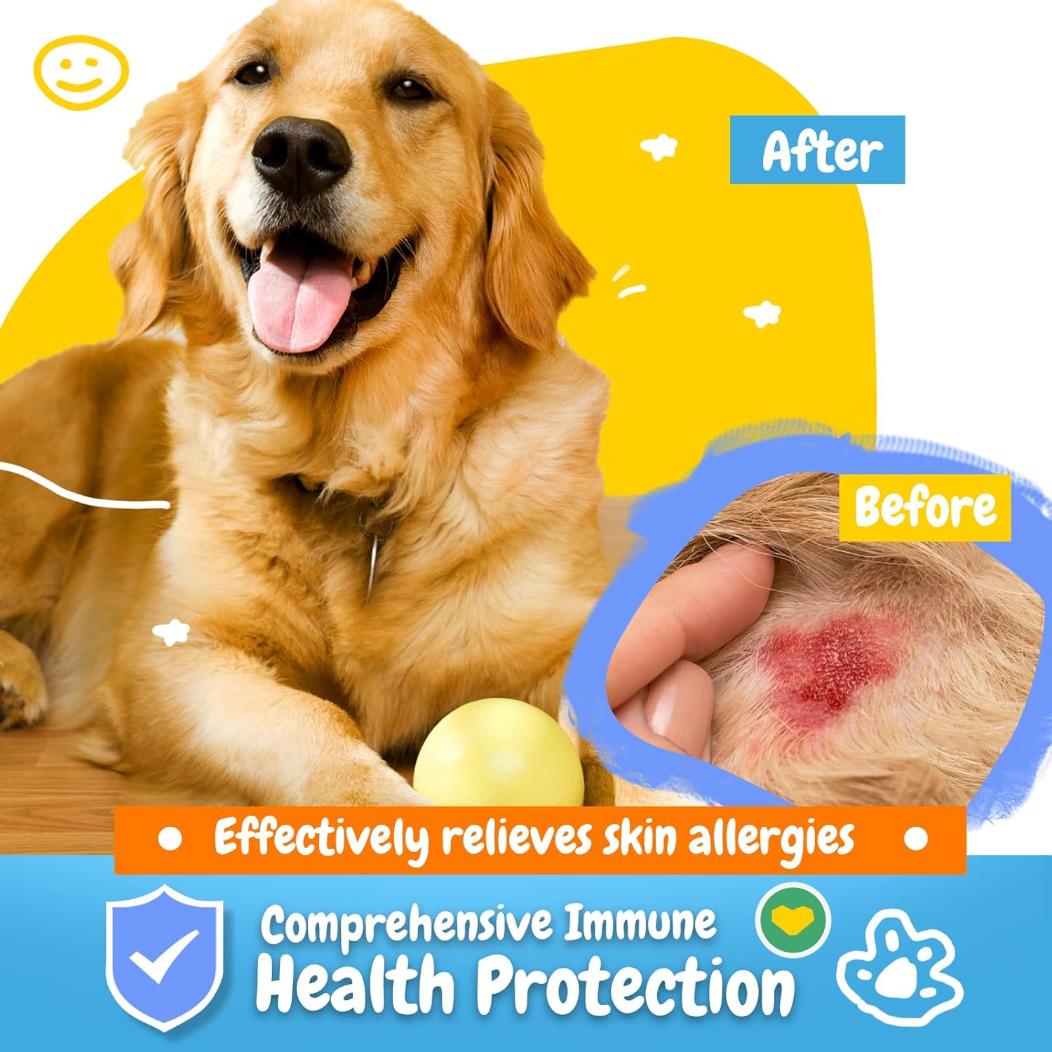 • All-in-One Solution for Allergy & Skin Health: Relieve your petโ€™s allergy symptoms, from itchy skin to paw licking, with a multifunctional formula that tackles seasonal allergies, supports skin and coat health, and promotes overall comfort using ingredients like Turmeric, Apple Cider Vinegar, and Hemp Seed. These natural ingredients help maintain your petโ€™s comfort year-round, suitable for dogs of all ages.