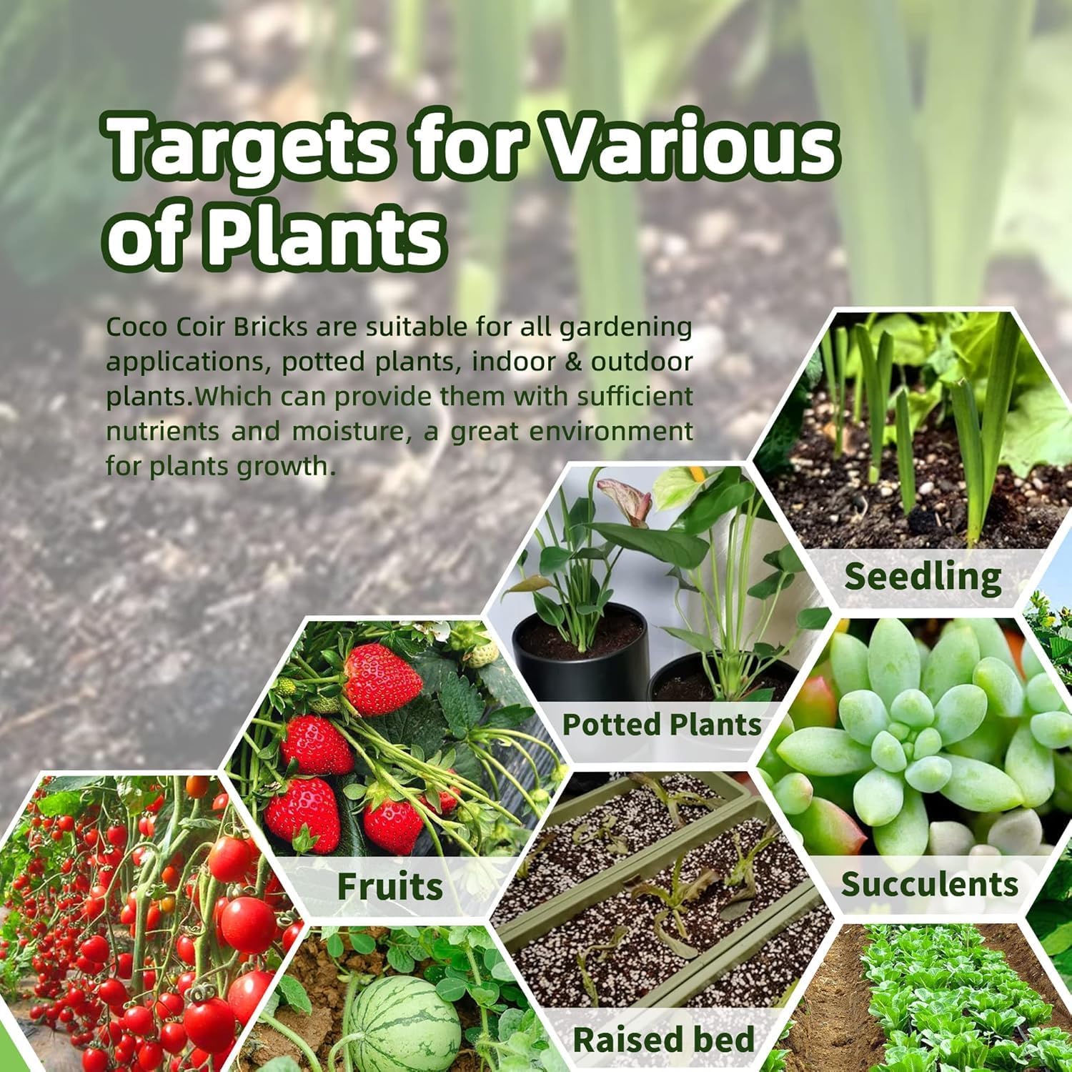 - Excellent Moisture Retention - Simply expand in water, then mix with potting soil for indoor plants or outdoor plants, coconut coir bricks can be broken up and used as seed starter soil in gardening pots, garden containers, and garden terraces. Coco fiber retains moisture to keep plants hydrated, even in dry or humid weather. With a high cation exchange capacity (CEC) and neutral pH, using coco coir bulk greatly improves nutrient uptake.