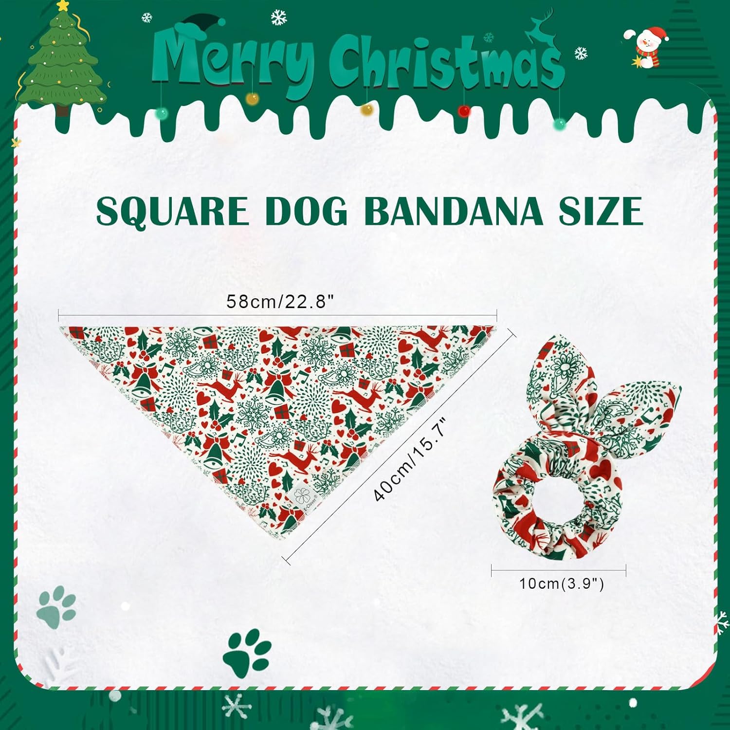 E-Clover Christmas Dog Bandanas & Matching Scrunchie Set White Green Red Dog Scarf Bibs Pet Bandana with Bow Tie for Small Dogs Puppy Owner Mom Winter