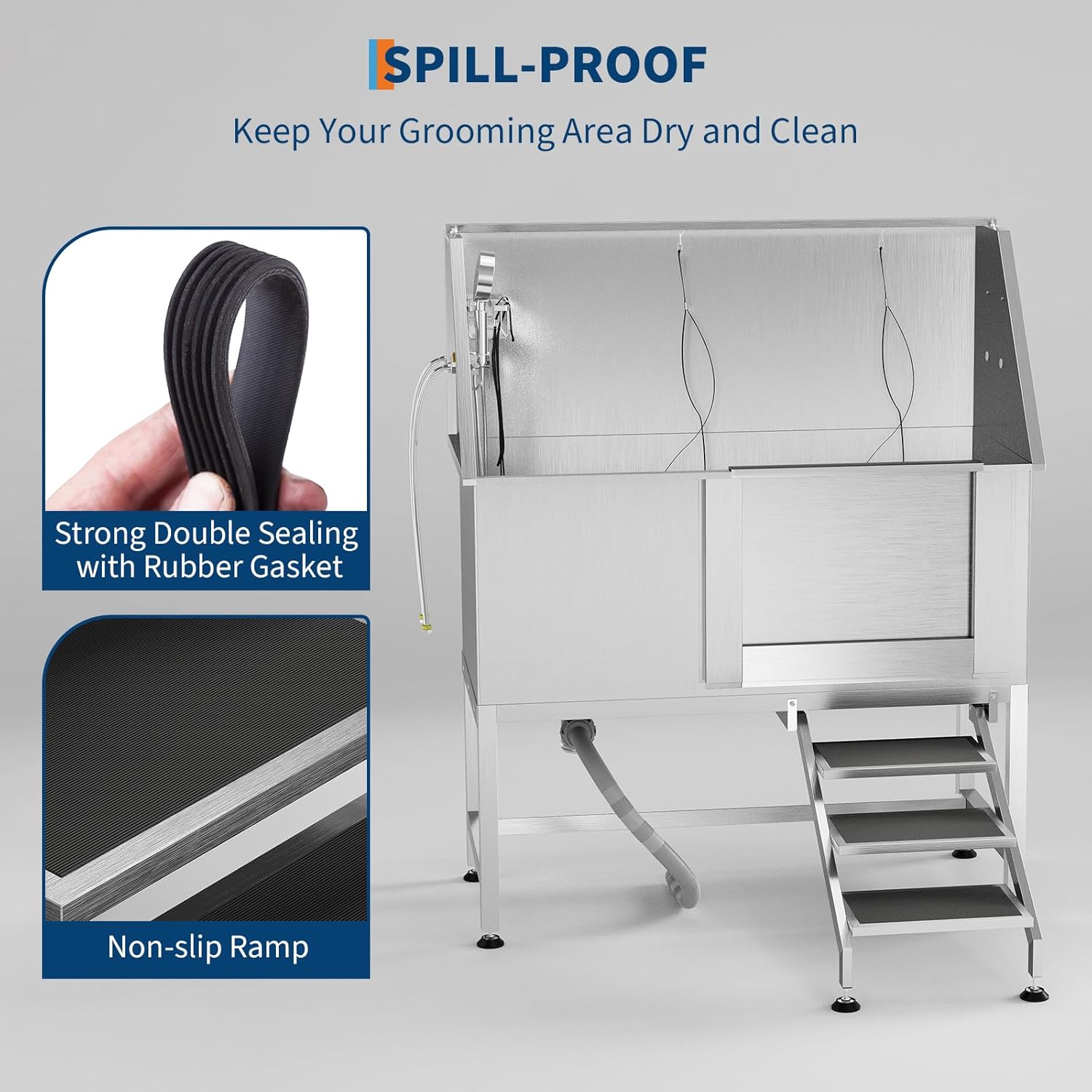 • Efficient Drainage System Removable floor grate prevents water accumulation and simplifies post-bath cleanup. Maintains tidy workspace during grooming sessions.