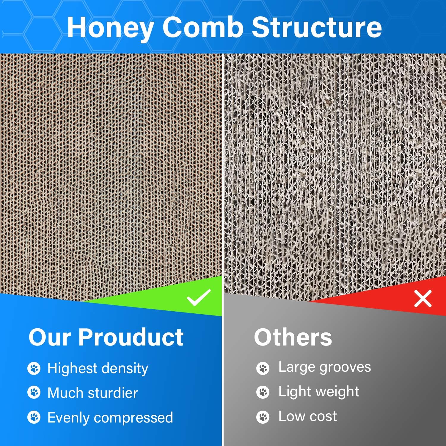 • 【DURABLE MATERIAL】Made by high-quality corrugated cardboard. Five layer of corrugated paper as a pressed unit, put together with strong glue bond to ensure the durability.Cat scratching Board can be used for both vertical and horizontal scratches, and it is fully reversible.