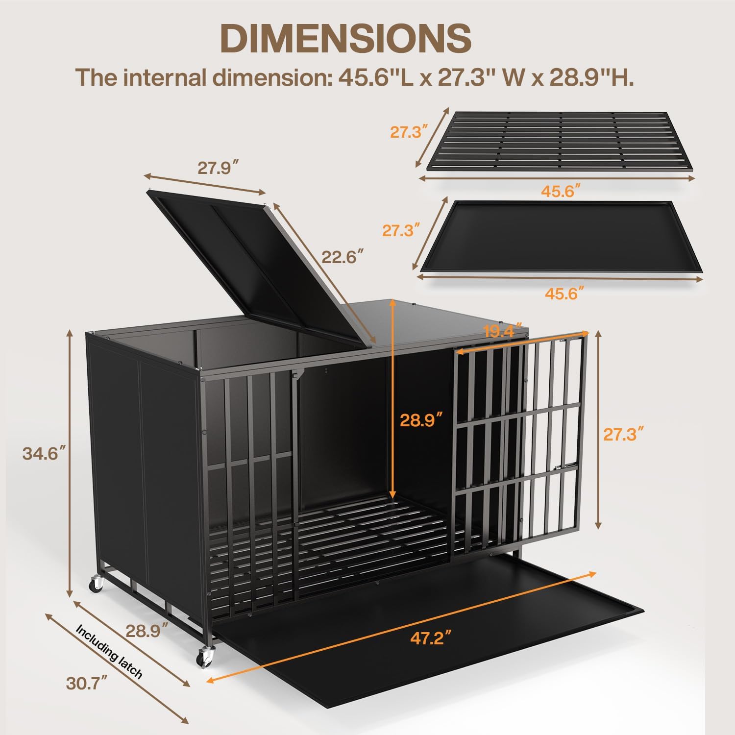 • Convenient for Dog Owners: It is easy to move the 80LBS crate thanks to the four wheels, two of which are lockable for added security. What's more? The crate also comes with a removable plastic tray for easy cleaning. Most parts are pre-assembled, and only four wheels and ten screws need to be installed, buyers can set up the crate within 10 minutes.