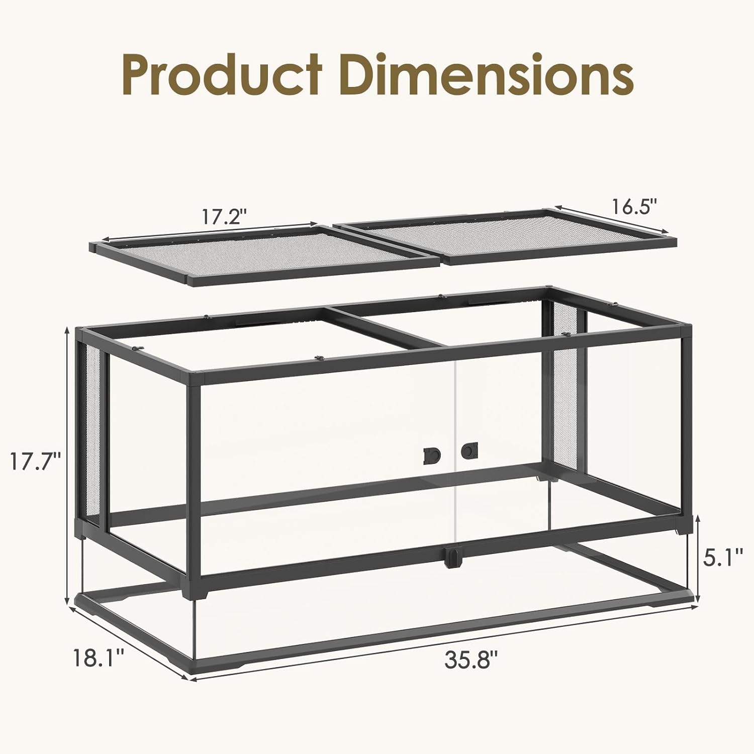 • Heating-Compatible Raised Base & Cable Port: This reptile tank features a raised base compatible with heating mats and a top sliding cable port, allowing easy wiring for heaters or lights while keeping cords hidden