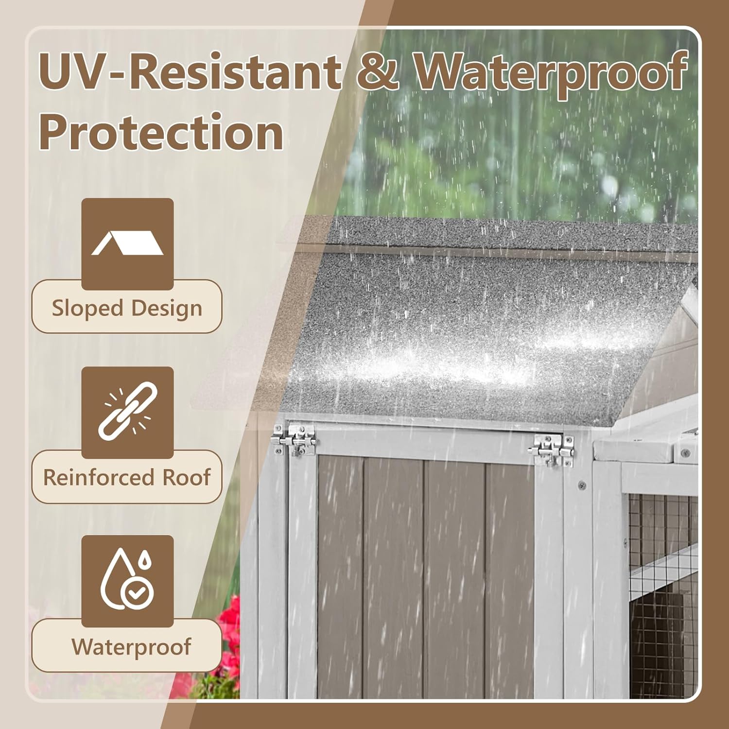 • Built Tough for Any Weather-Crafted from solid wood , this hutch holds up rain or shine. Sloped waterproof roof provides shade for your pet.