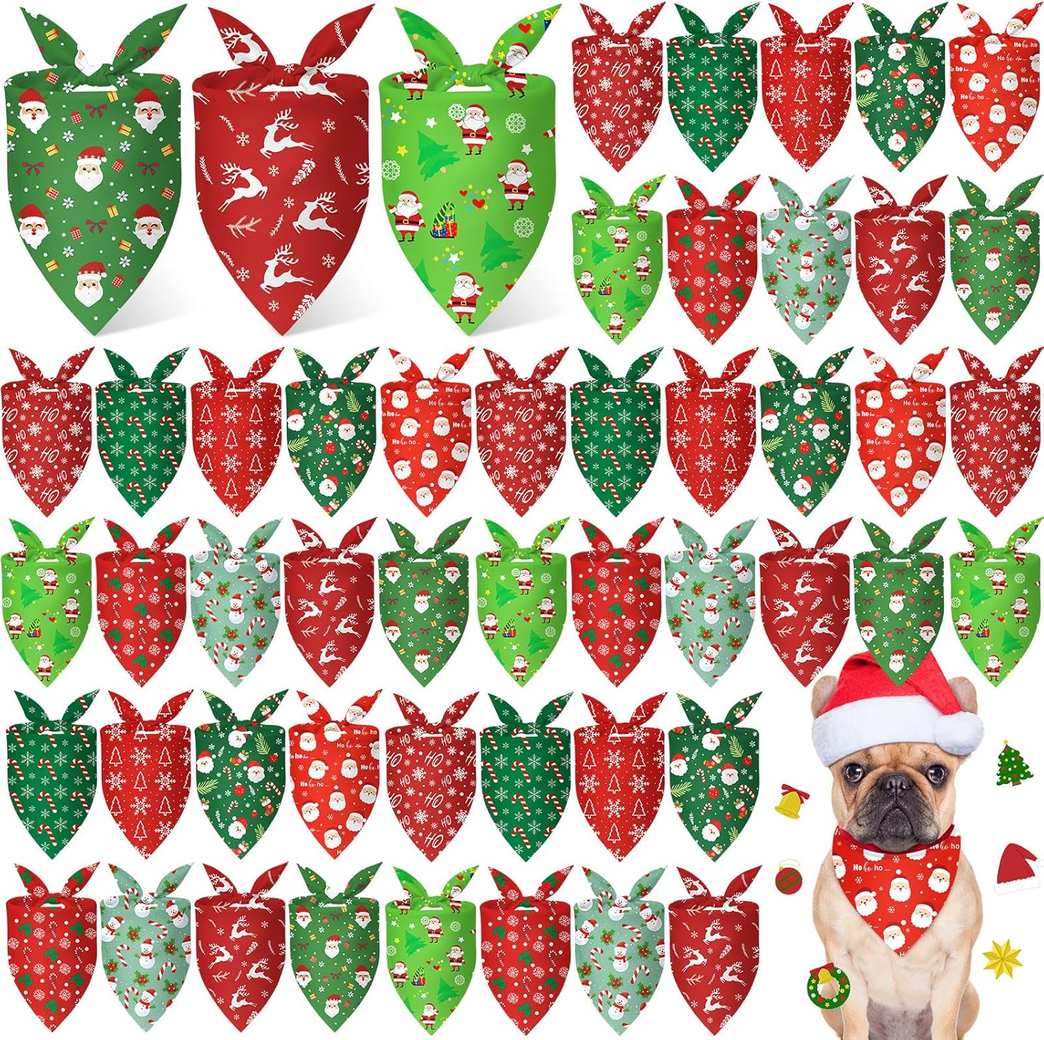 Weewooday 50 Pcs Christmas Bandanas for Dogs Xmas Bandanas Bulk with Santa Snowflake Candy Cane Soft Bibs Adjustable Triangle Doggie Scarf for Small Medium Large Pet (25.6 x 17.7 x 17.7 Inch)