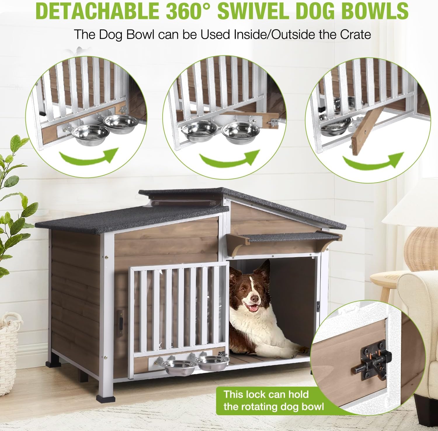 • ANTI-CHEWING METAL FRAME Our dog house outdoor is built with solid wood and metal frame. The upgraded metal frame is designed to prevent pets from chewing and destroying.Never worrying about your pup damaging their shelter – this dog house is built to withstand their natural instincts