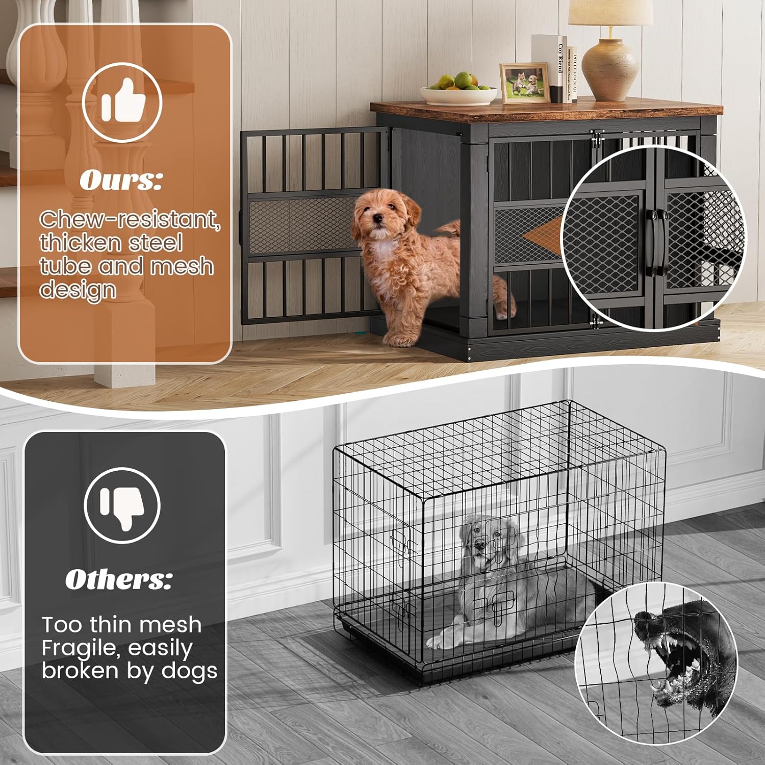 • Durable & Easy to Clean: Crafted with a sturdy wooden surface and an easy-to-clean interior bottom, this XL dog crate ensures durability while making maintenance hassle-freeβ€”no more worries about pet messes