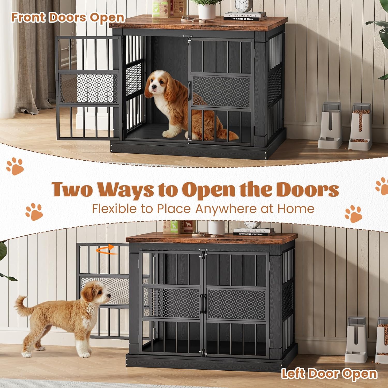 • Flexible Placement: Designed with both a left-side door and a front door, this dog kennel indoor allows easy entry and exit for your pet. The versatile design of the dog crate lets you place it anywhere in your home without inconvenience