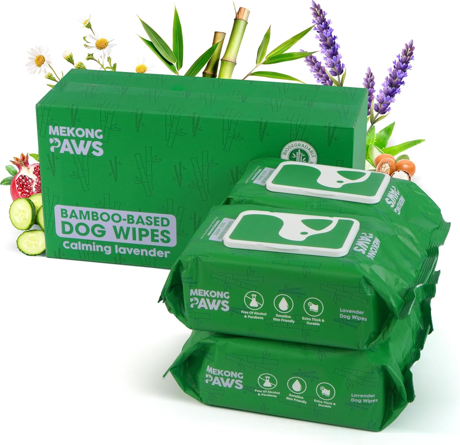 Pet Grooming Wipes - Natural & Organic Bamboo Base - Calming Lavender Scented - Freshening Dog Cat - Gentle on Sensitive Skin - Thick & Durable for Paw Coat & Bum Cleansing - 400 Count
