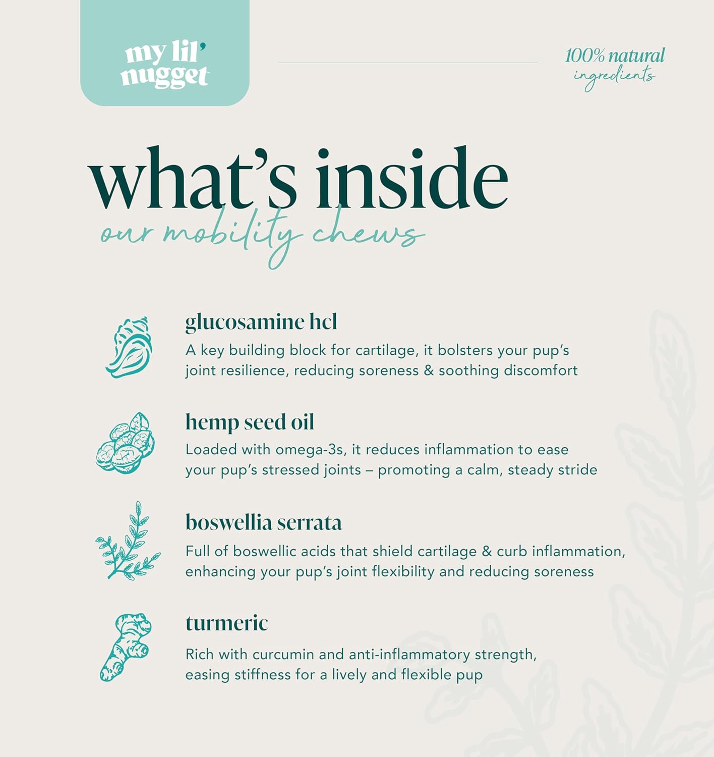 My Lil’ Nugget – Dog Calming & Mobility Support Bundle | Calming Chews for Dogs with DHA & Lion’s Mane | Hip & Joint Supplement with Glucosamine & Hemp | Anxiety Relief & Joint Health – 2 Pack